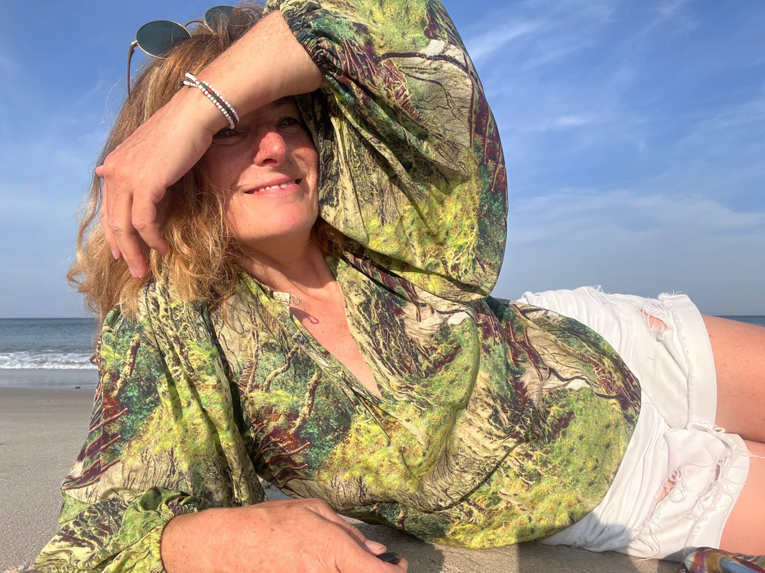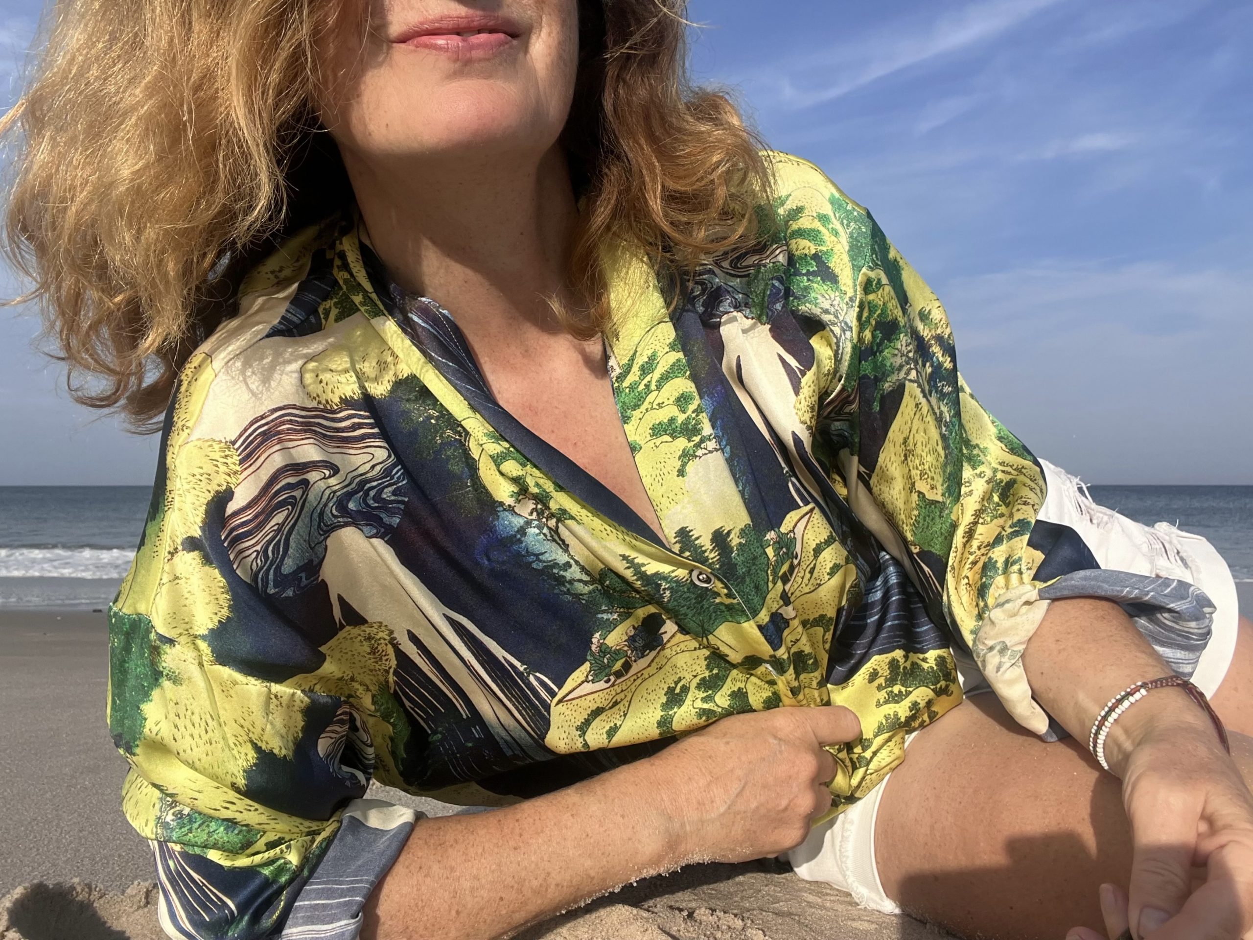 Die Schalkragen-Bluse. Großzügig ist sie geschnitten. Ich habe sie gern, krempele am liebsten die Ärmel hoch. Das Schmeichelnde an ihr ist vor allem der weich auslaufende Schalkragen.