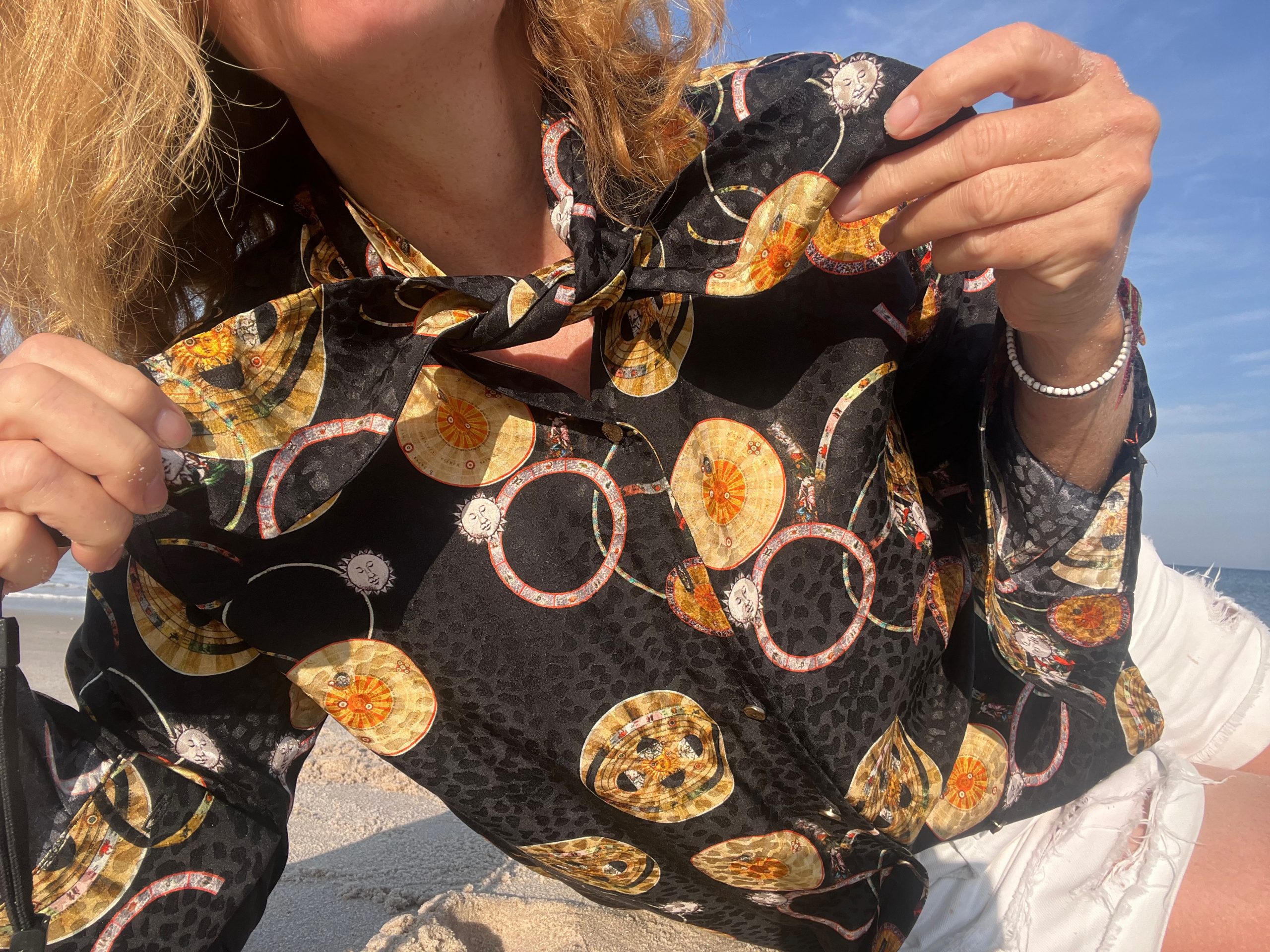 Die Puffarm-Bluse. Sie ist ein Evergreen. In jeder Kollektion gibt es sie, nur in der Childhood Edition haben wir sie nicht aus Seide produziert. Also wäre es eine exklusive Wahl, reserviert für Euch.