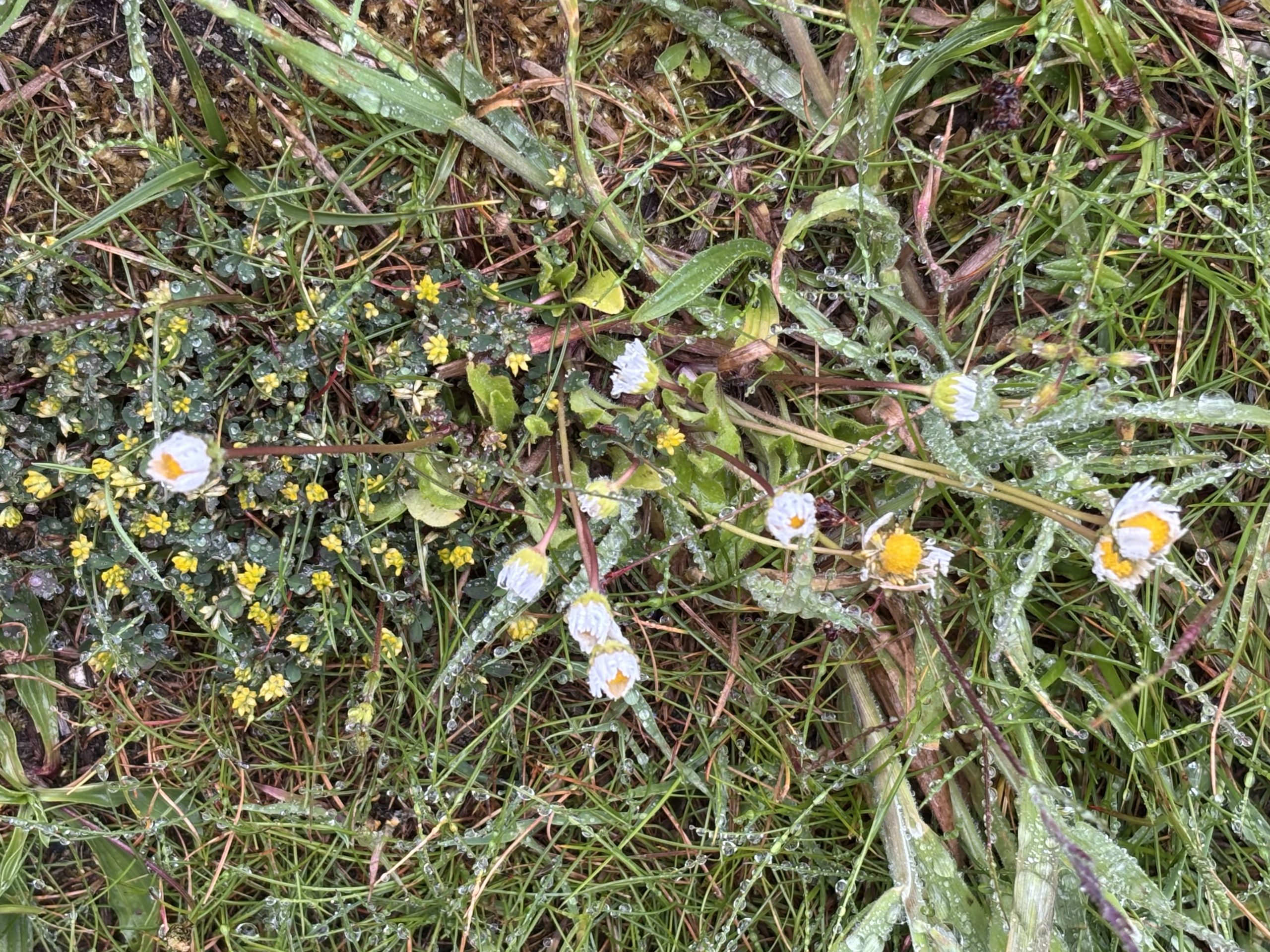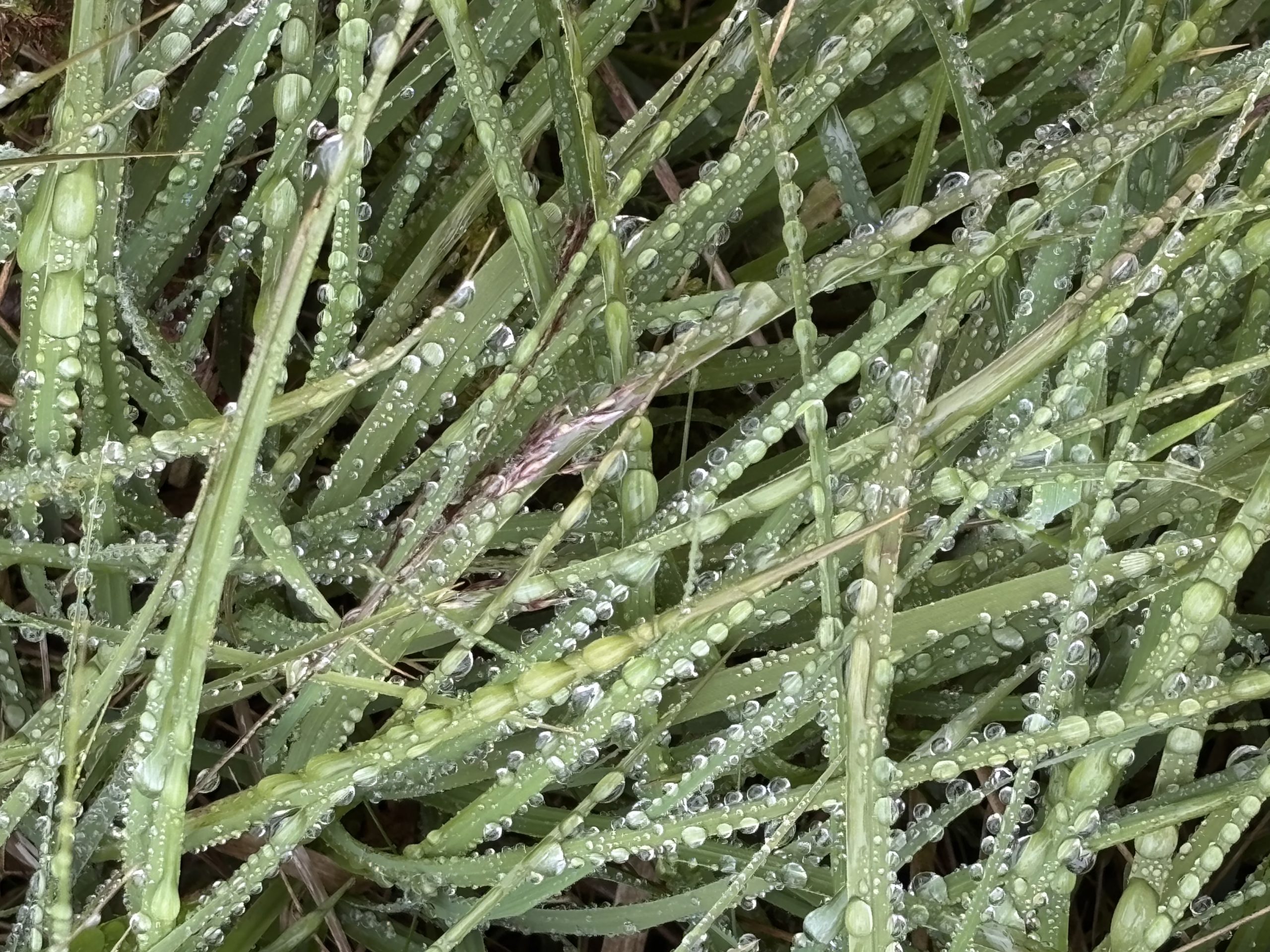 Gefesselt beobachtete ich jedes Blatt und jeden Grashalm. Studierte die Tropfen in ihrer Form, wie prall sie sich wölbten, wie sie träge von den Gräsern hingen, als wären sie Glasperlen im Reich der Feen. Realität und Fantasie, innen und außen fügen sich zusammen.