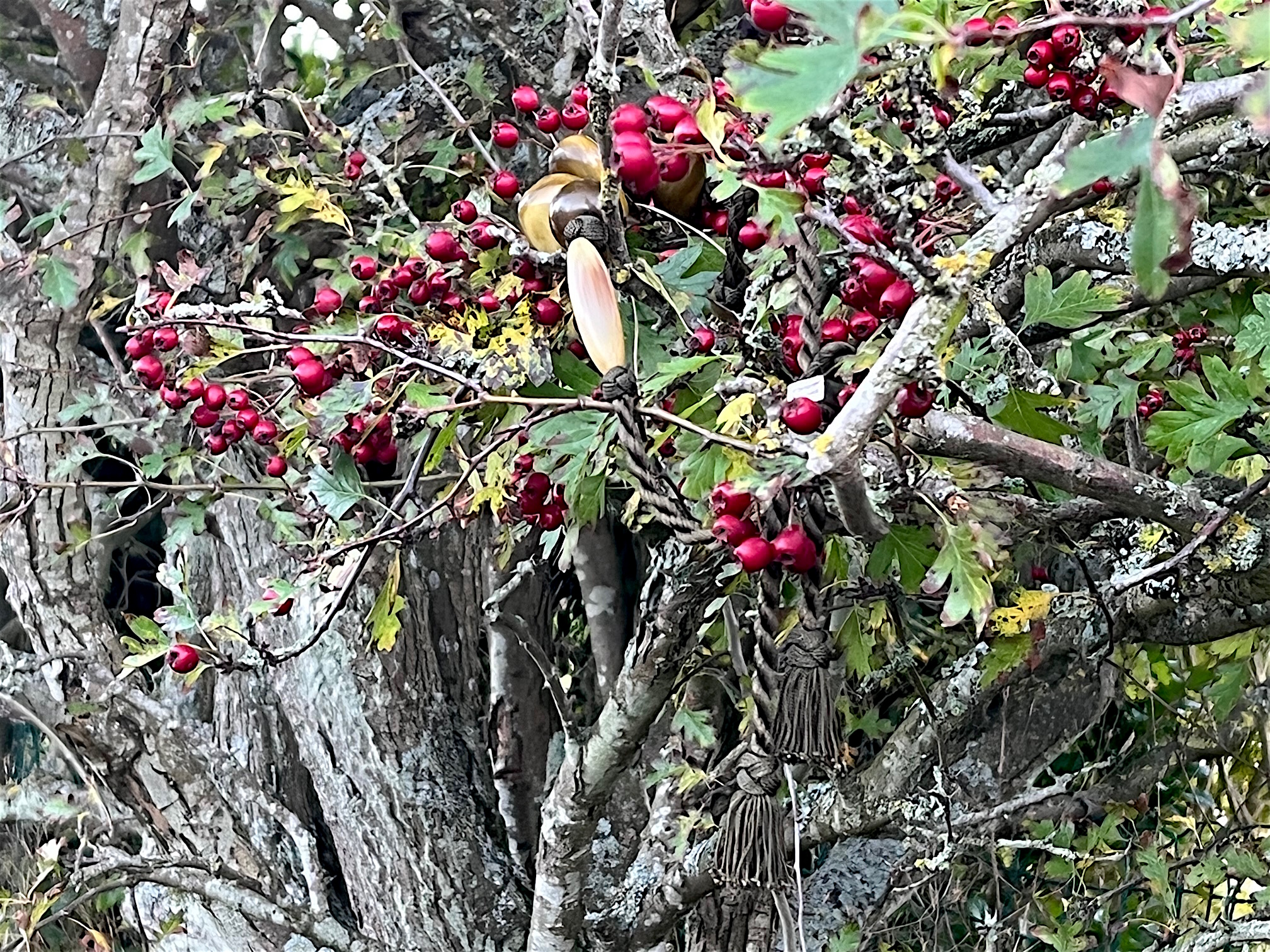 Vorsichtig drappiere ich die erste Kette zwischen die morschen Zweige. Ich bin ganz still, bedächtig und delikat mit meinen Fingern, will nichts abknicken, nichts beschädigen. Ich prüfe das Gewicht der Kugeln, beobachte, wie sich die Beeren in die Zwischenräume legen, so als wollten sie das Fremde umarmen …
