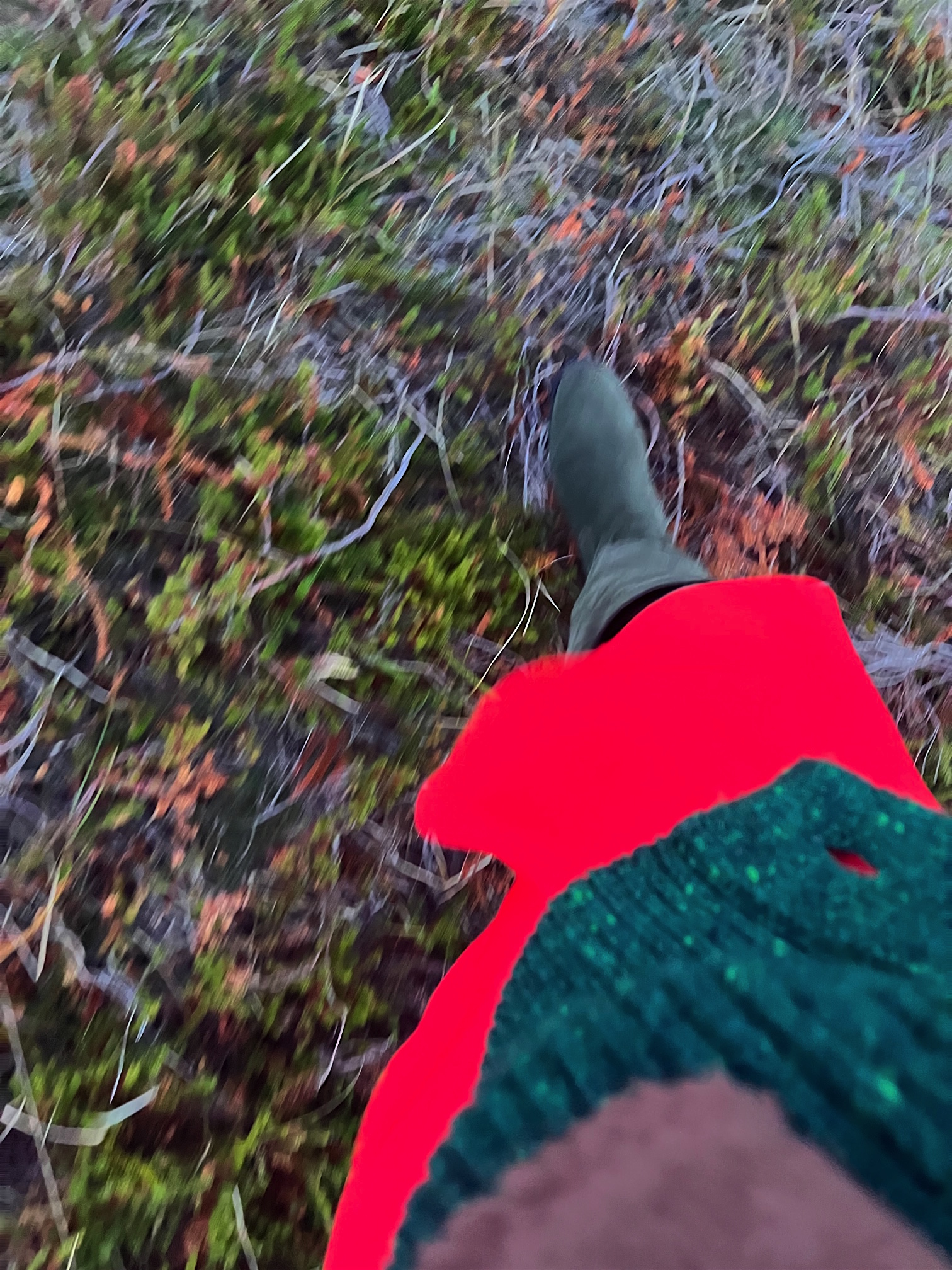 Den Rock habe ich hochgeschoben und unter die Wolljacke gestopft, damit die Dornen, den Stoff nicht beschädigen. Es sieht mich ja keiner, ich bin allein hier draußen. Die Ärmel verfangen sich ab und an in den Ästchen. Trotzdem mache ich weiter, versuche geschmeidig zwischen die Gräser und Zweige zu gelangen, um für einen Moment mit der Landschaft zu verschmelzen.