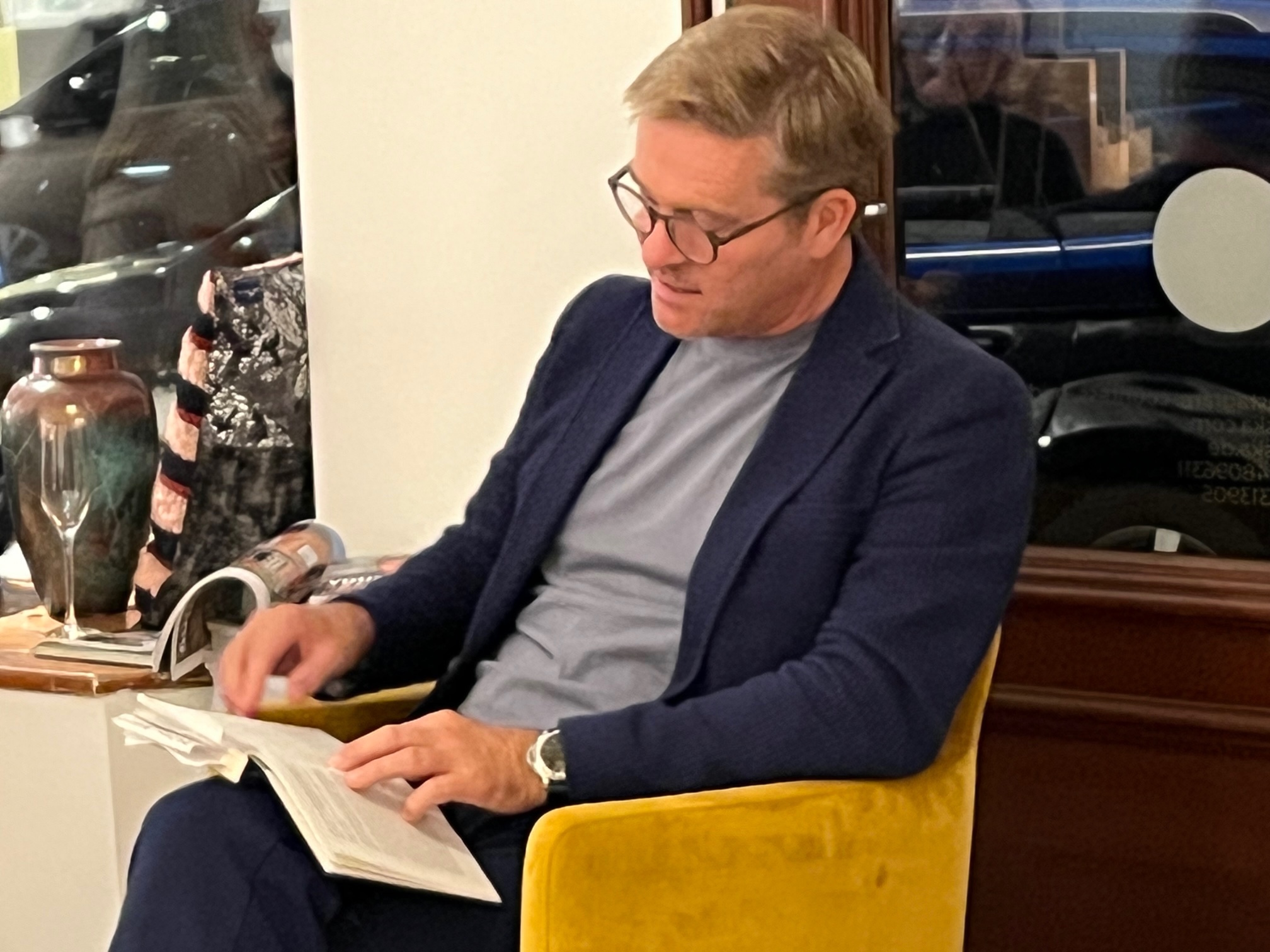 Ich mag ihn, wer sollte ihn nicht mögen. Wir alle, die wir so zahlreich da sitzen in der Poolstrasse 30, mögen ihn, auch die paar Männer, die dazwischen sind. “Metrosex” sagte man einmal über den Fussballer David Beckham. Hinnerk, bist Du das auch?