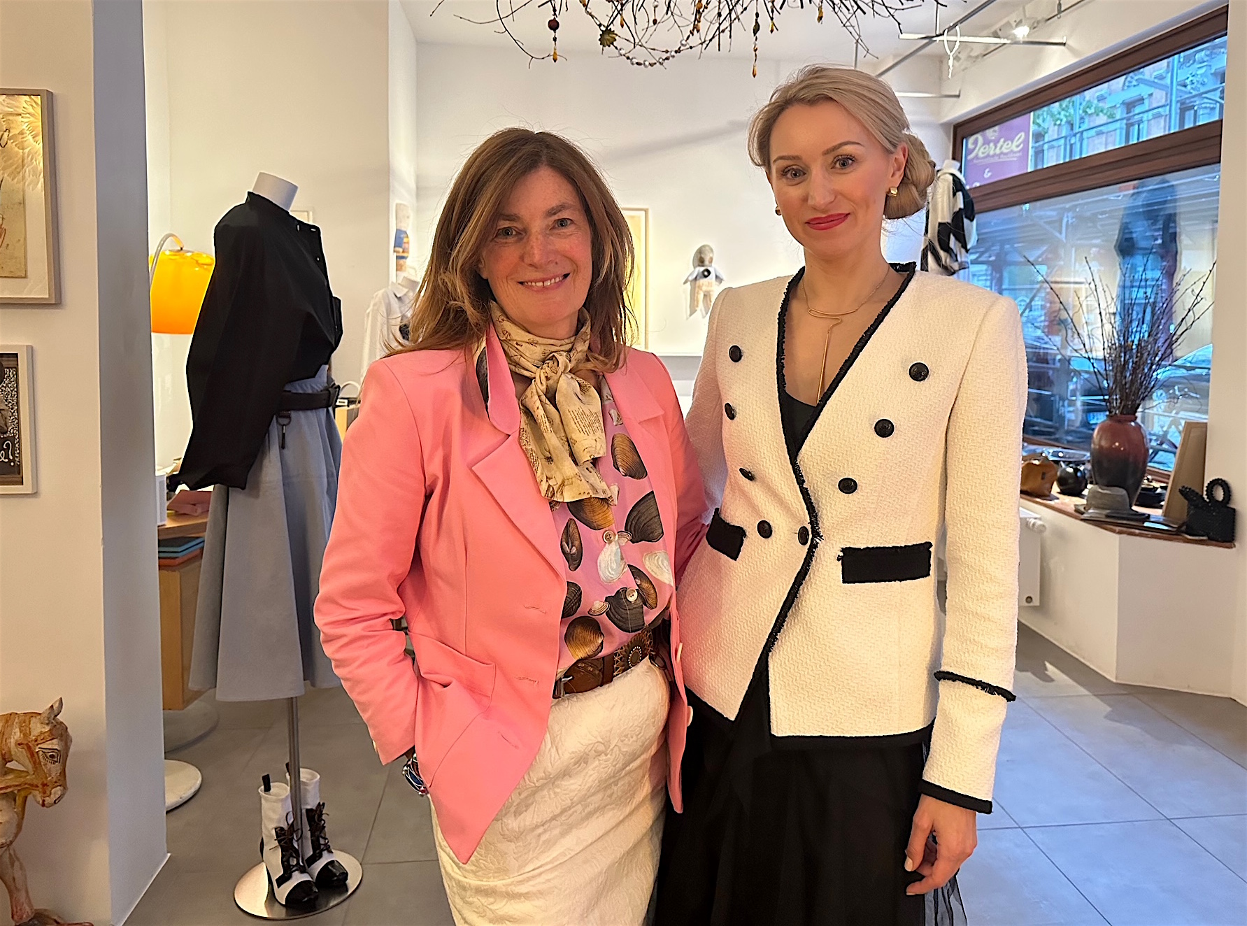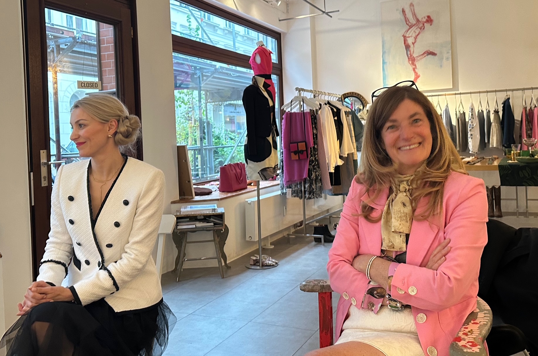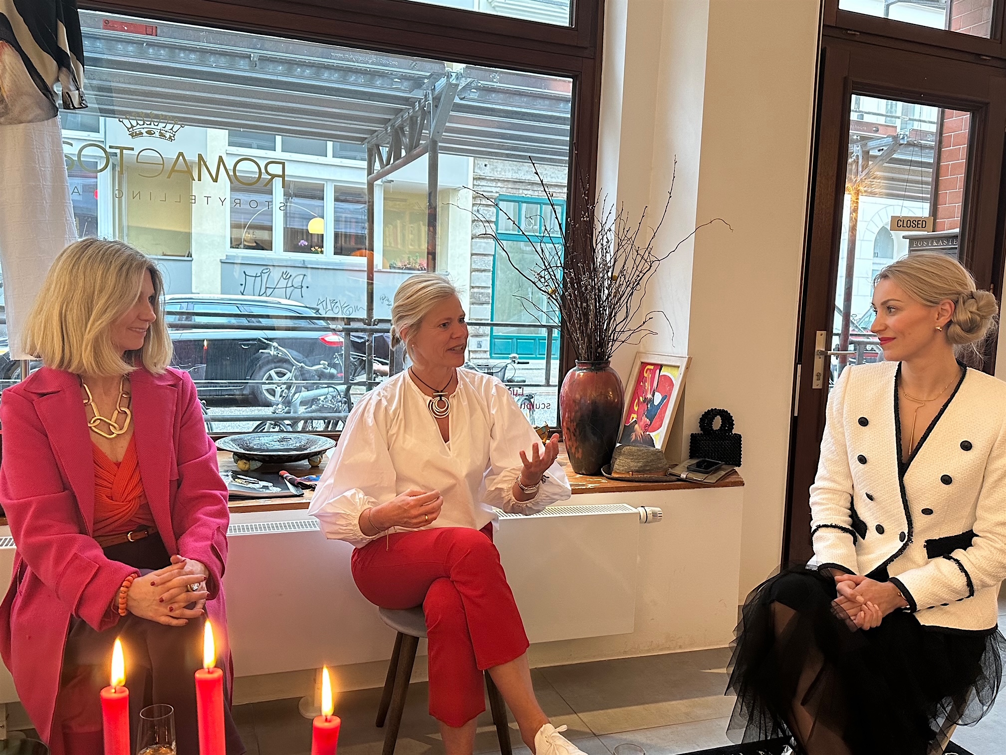 Wie wir da zum Schluss spontan sitzen für ein Foto, trennen uns jeweils zehn Jahre von Ende dreißig bis Anfang sechzig. Da lassen sich viele Wege ausprobieren für eine Eleganz des Denkens und Seins. Ich meinte auch mal, ich könnte nur im Jil Sander Kostüm erfolgreich sein. Mittlerweile weiß ich, dass auch “Bad Girls get the Corner Office”.