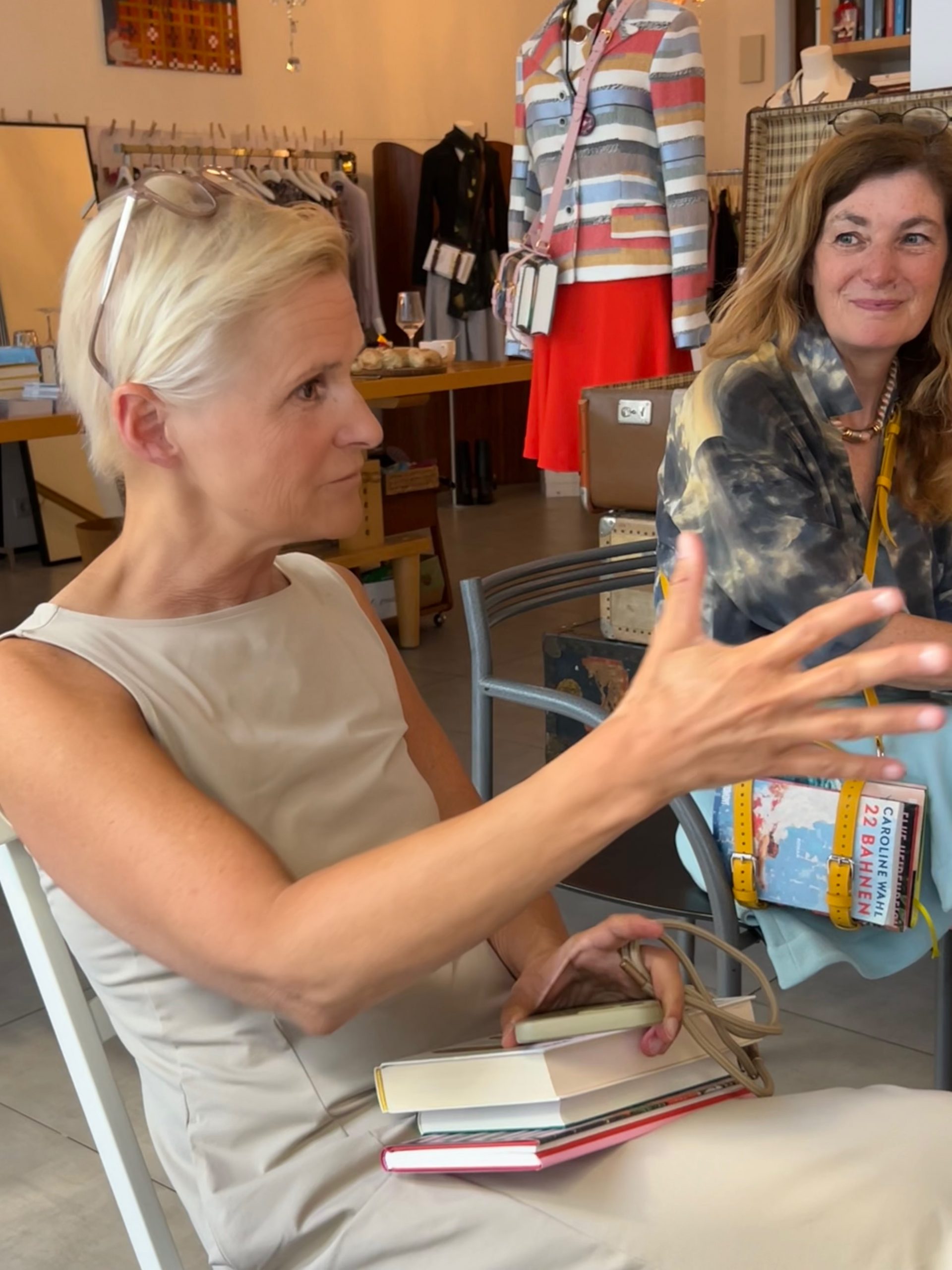 Meine Aufgabe ist es diesmal nicht, das Gespräch in die oder jene Richtung zu lenken, sondern mit der inneren Stopp-Uhr das nächste Buch anzukündigen, wenn alle am Liebsten noch länger bei dem Vorherigen zugehört hätten. Los geht es…