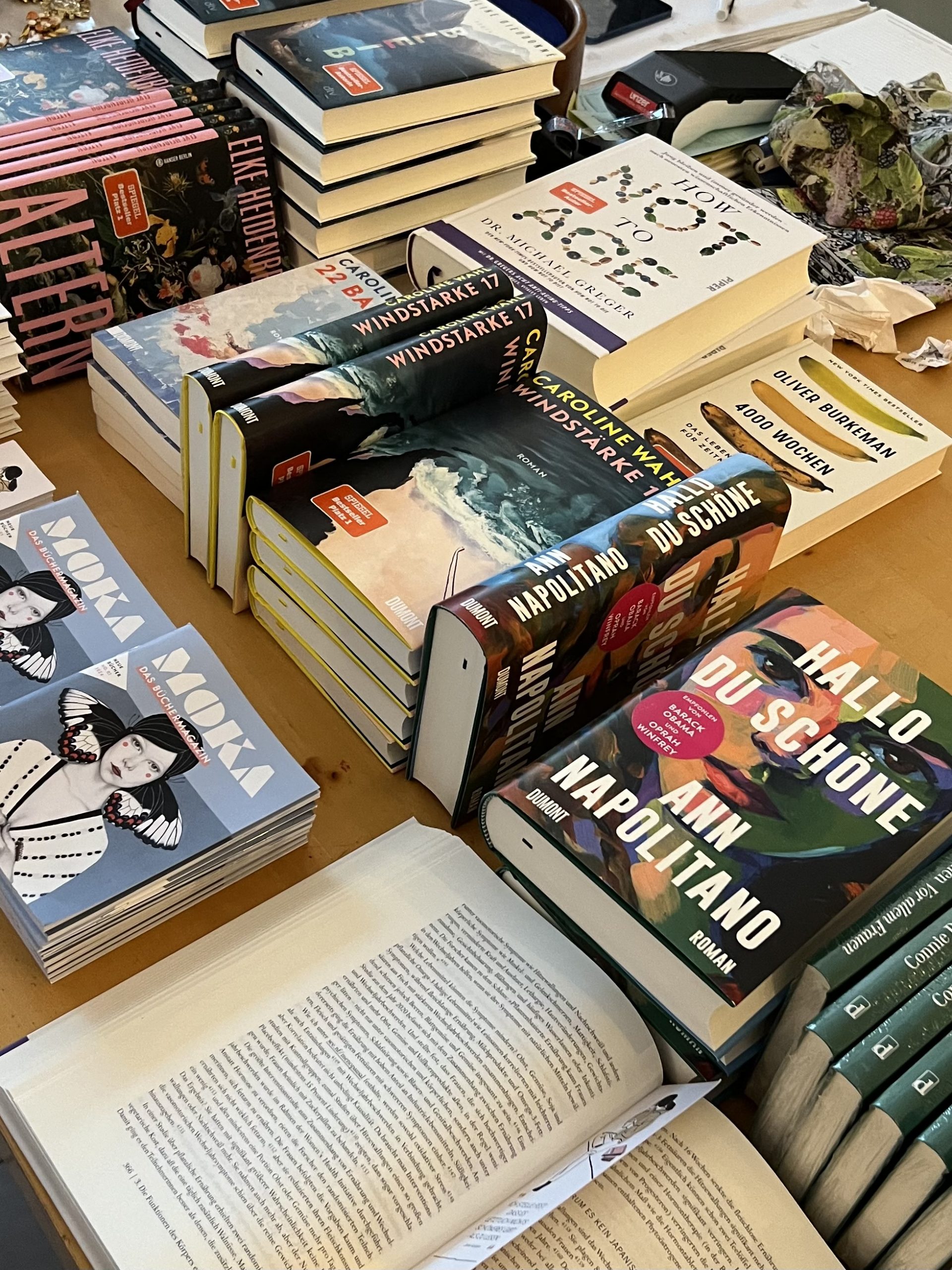 Ihr merkt schon, auf keines der Bücher will man verzichten, und vier fehlen noch. Bestseller gestern Abend neben Elke Heidenreich war das Sachbuch “How not to Age” von Dr. Michael Greger, für ein langes, vitales Leben (€28,00). Hätte ich nicht gedacht. Ein Buch zum Stöbern und Lernen.