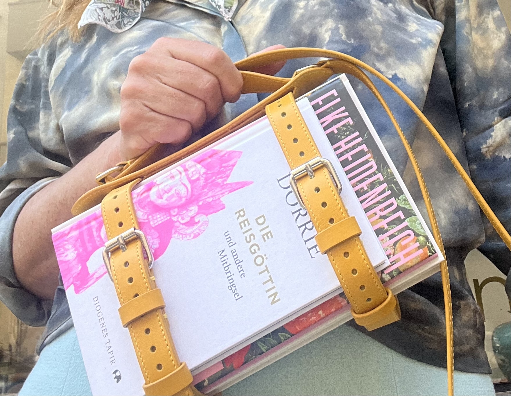 Ich packe in meinen Koffer: alle (!) Bücher, eine Bluse von Roma e Toska, oder auch ganz viele davon, einen Rock, ein Tuch oder auch zwei … Was nicht mehr reinpasst, wandert in die Book Bag aus Paris, dieses kleine Leder-Riemich-Teil, das seit gestern mein “most wanted” ist. Es ist der Auftakt in eine von vielen neuen Kooperationen mit Liyabrairie aus Paris, für die wir exklusiv verkaufen dürfen.
