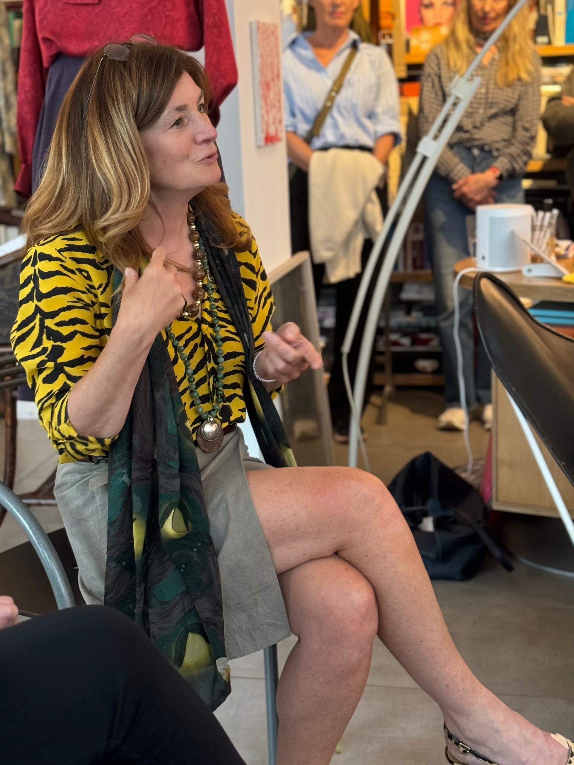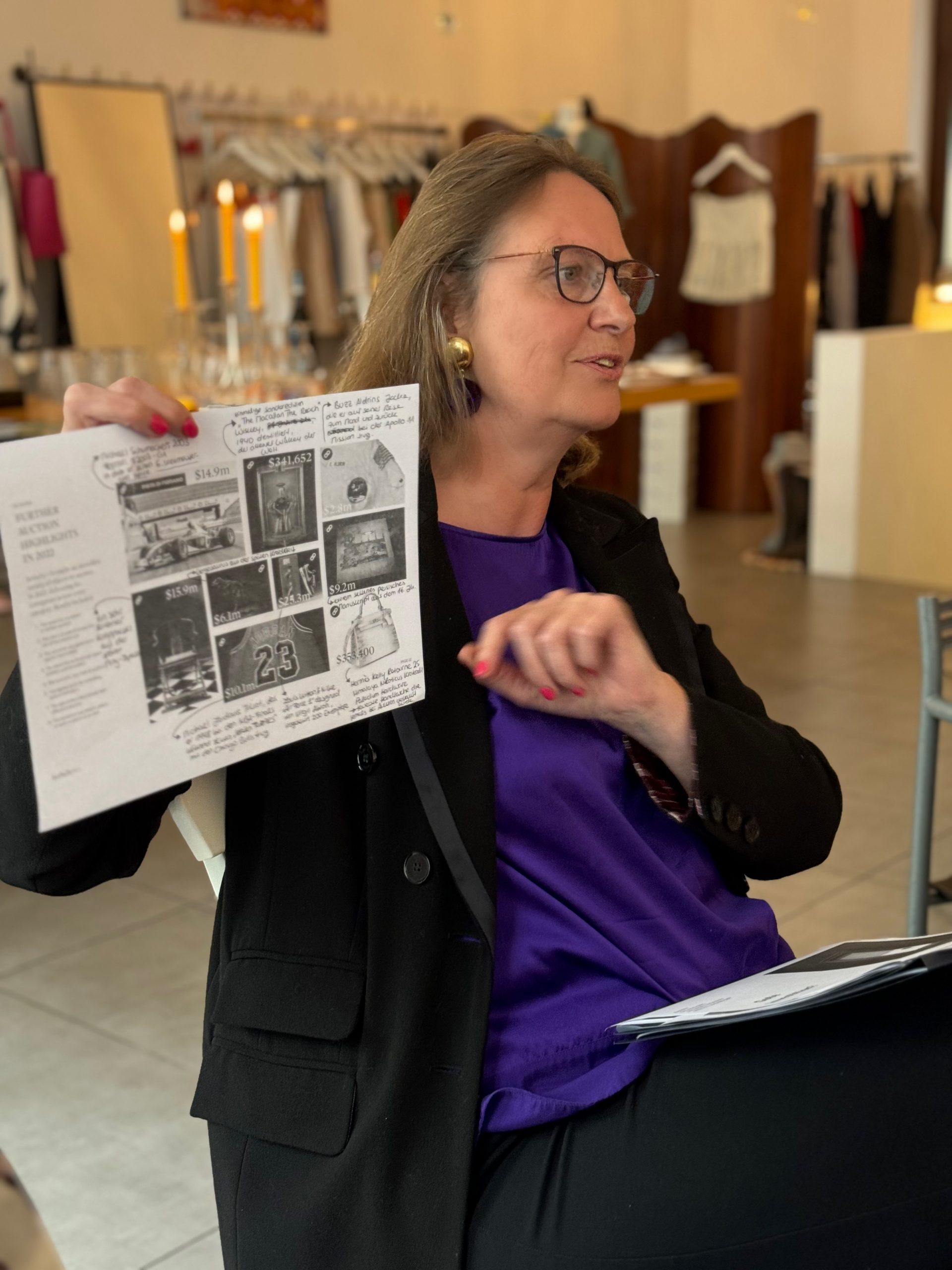 Das Damals beschreibt auch diesen It’s a Dienstag. Von Anfang an führte der Dialog schnell aus den Zahlen und Superlativen in die Passion für die Kunst und die Künste. Wie anders dagegen die mediale Präsenz der großen Auktionshäuser: das teuerste Bild, die teuerste Tasche, das teuerste Auto, bis hin zu Skurilitäten wie das Dinosaurier Skelett, das für 6,1 Millionen Euro unter den Hammer kam. Umsatzzahlen in Millardenhöhe, die oft an das Zocken an den Börsen erinnern, wie eine Zuhörerin einwirft. Im Schnellgang werden wir mit den Infos versorgt.