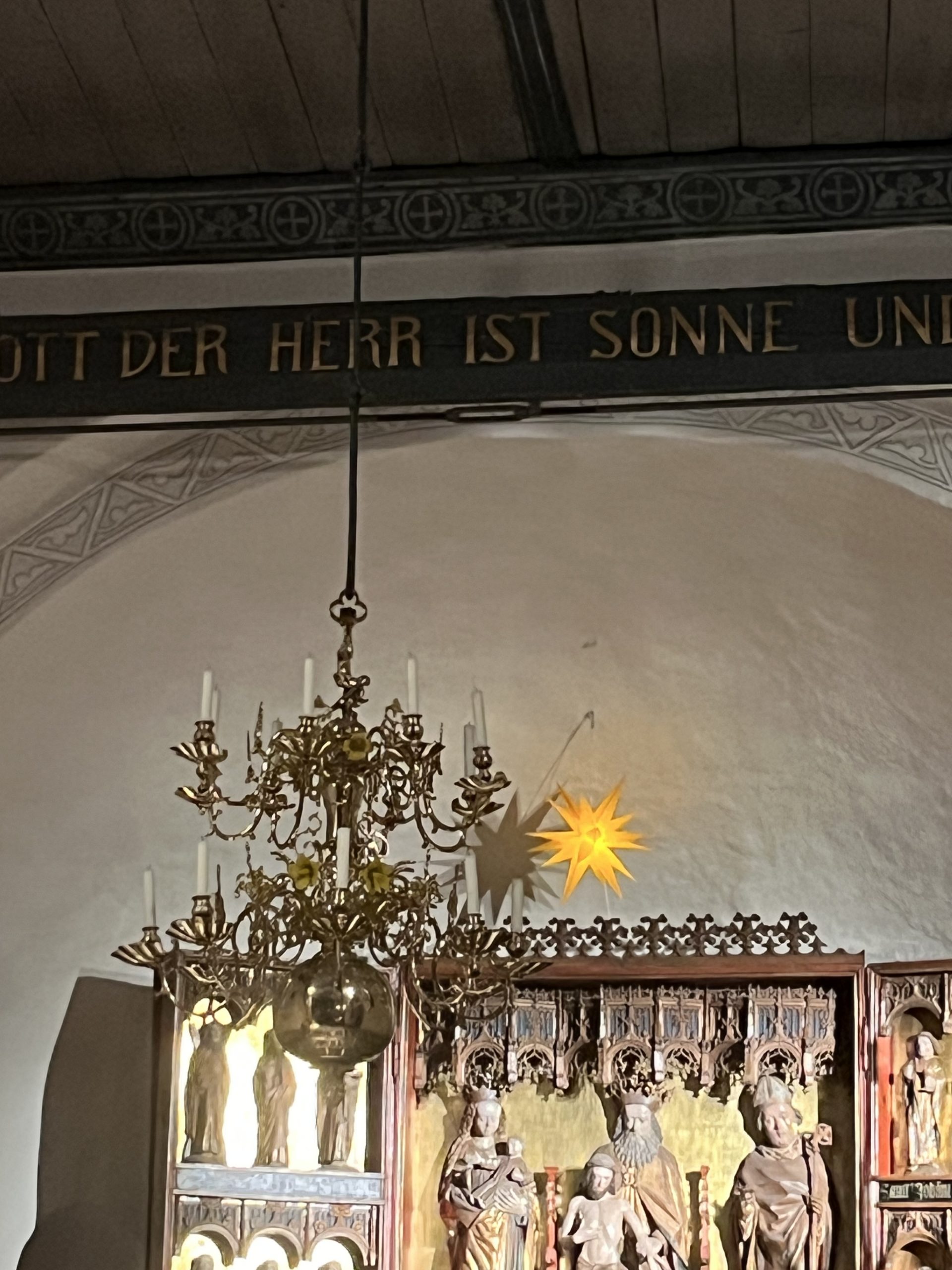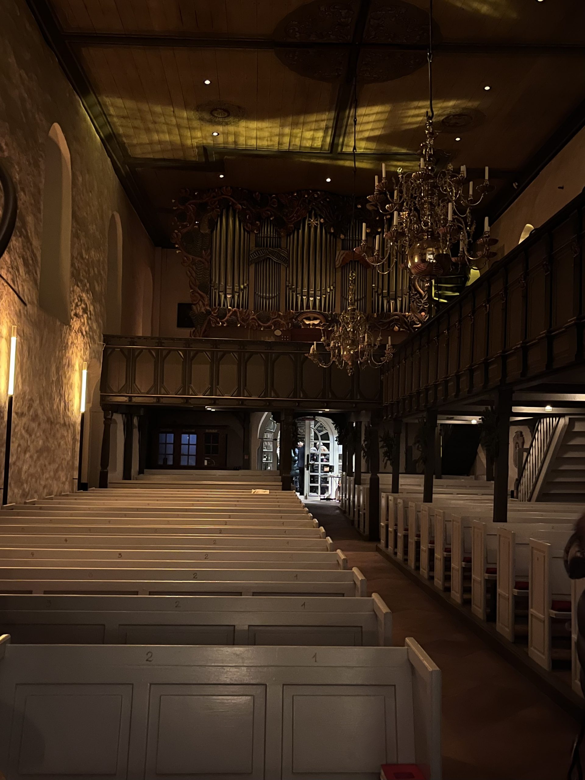 Wir hören leise von draußen den Sturm toben, dann ertönt die Musik drinnen in dem Kirchen-“Schiff”, das schon so viele Jahrhunderte den Unwettern getrotzt hat.