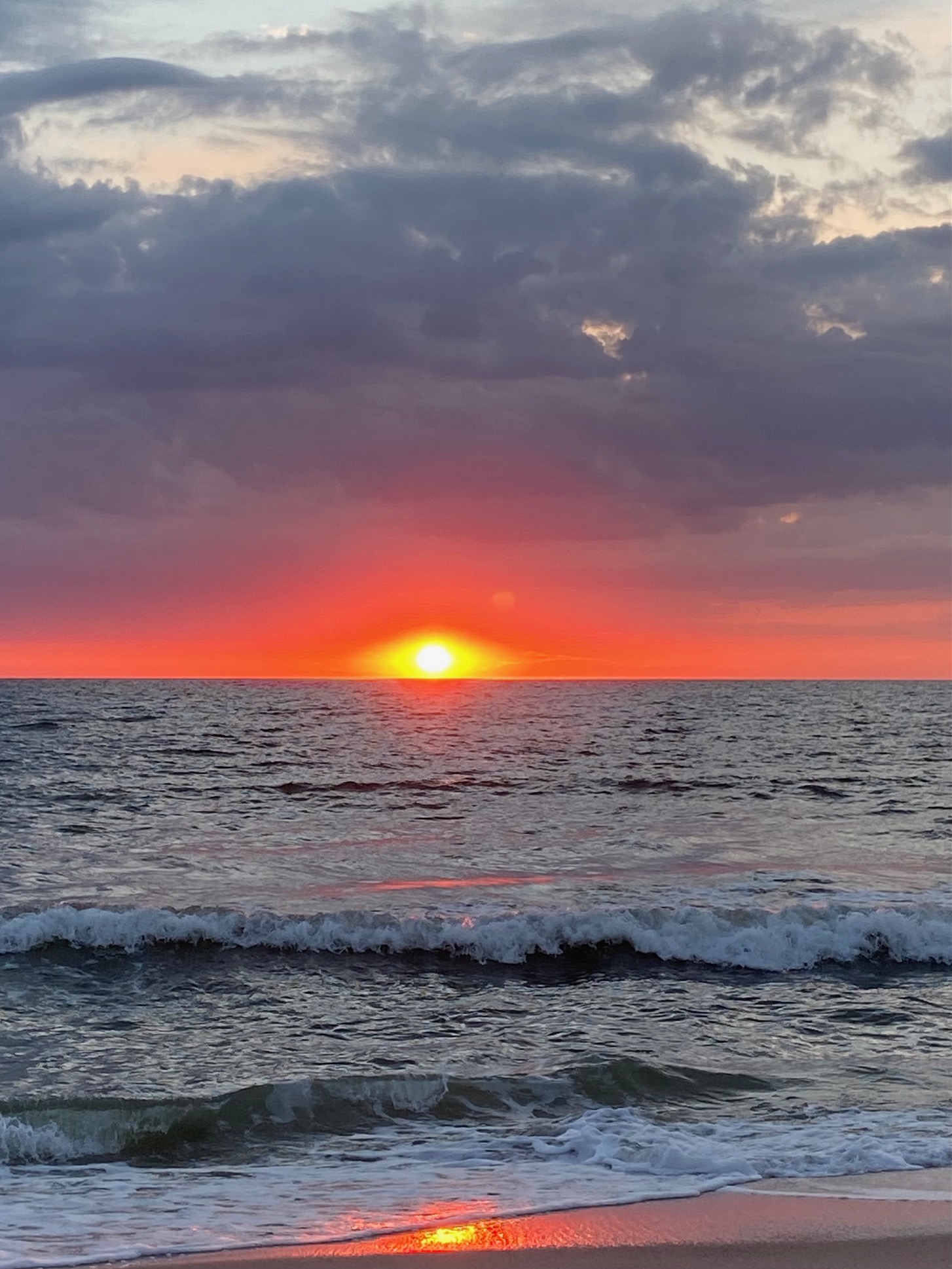 Die Unterhaltung springt, wir lassen es zu, können einander folgen und verlieren uns wieder in Andeutungen … Wir müssen schmunzeln, mal Arm-in-Arm, mal mit ein paar Metern Abstand, während die Sonne am Horizont so wunderschön blutrot untergeht.