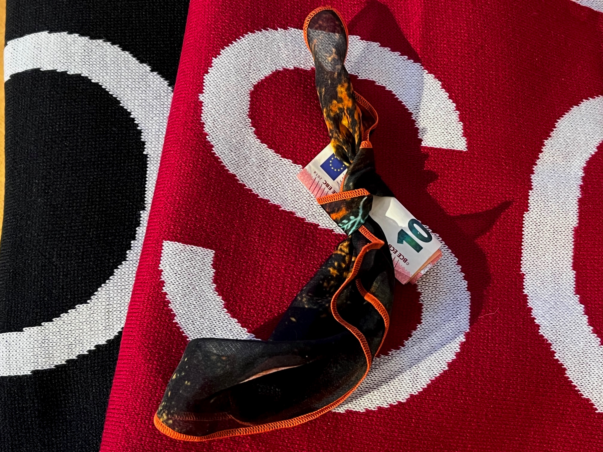 Den Schal gibt es in rot und in schwarz mit eingewebtem SOLIDARITÄT. Er kostet € 130,00 inkl. Versand, und wir legen einen zehn Euro-Schein dazu, für jemand, der sich über diese spontane Geste freut.