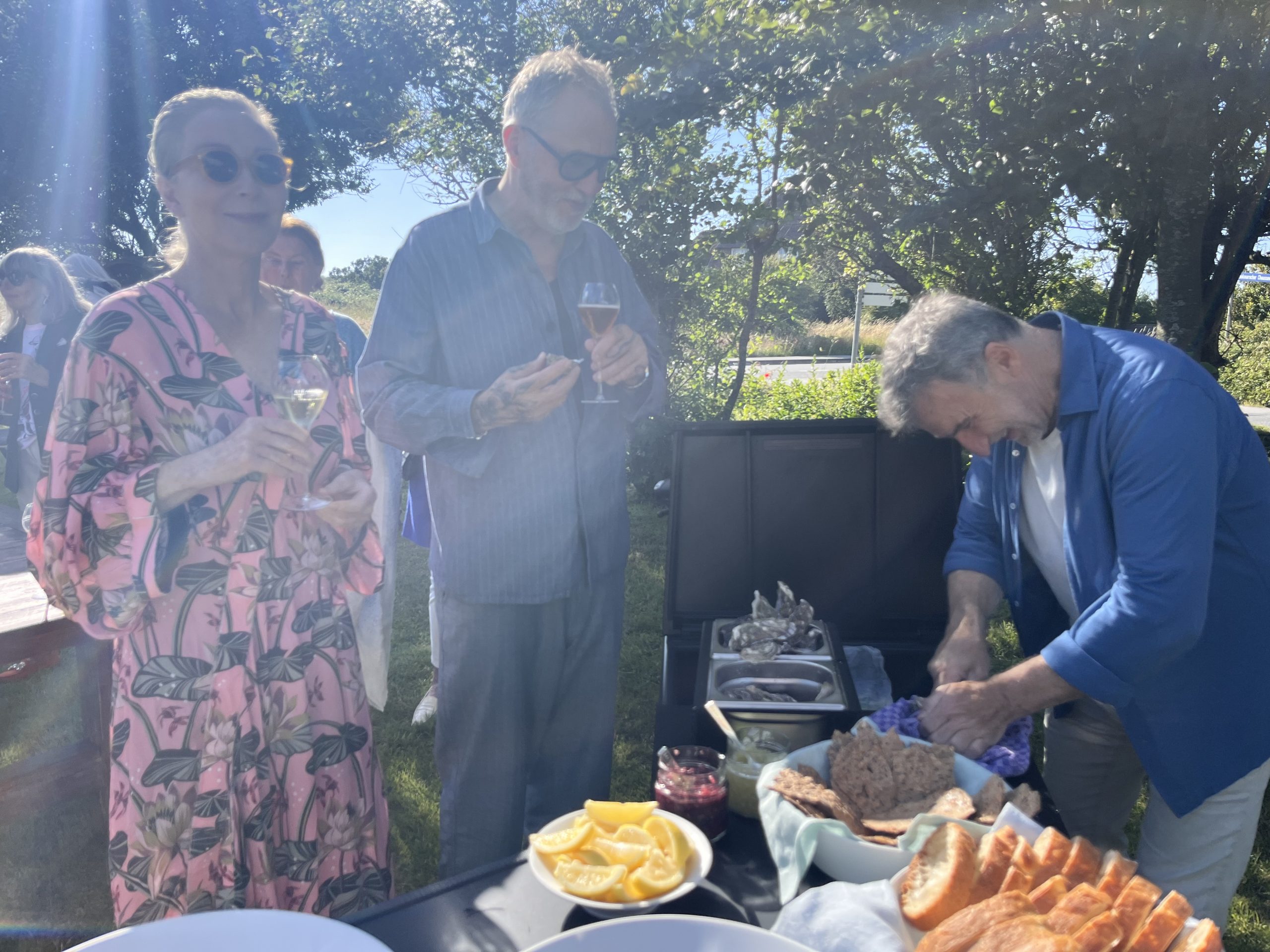 Johannes King und ich haben es versäumt, an unserem ersten Zwei-Sterne-Sommer Talk im Alten Bahnhof in Keitum Fotos von uns zu machen. Die Austern waren wichtiger, genauso wie die Gäste, der Champagner und Rosensecco, der blaue Himmel, das Sommerfeeling. Aber ich erinnere, dass man diese Schalentiere am besten um 7:00 Uhr morgens sammelt. Nicht, dass ich es vorhabe, ich simuliere, halte es mit den Perlen und erzähle dabei die kleine Geschichte der Austern.