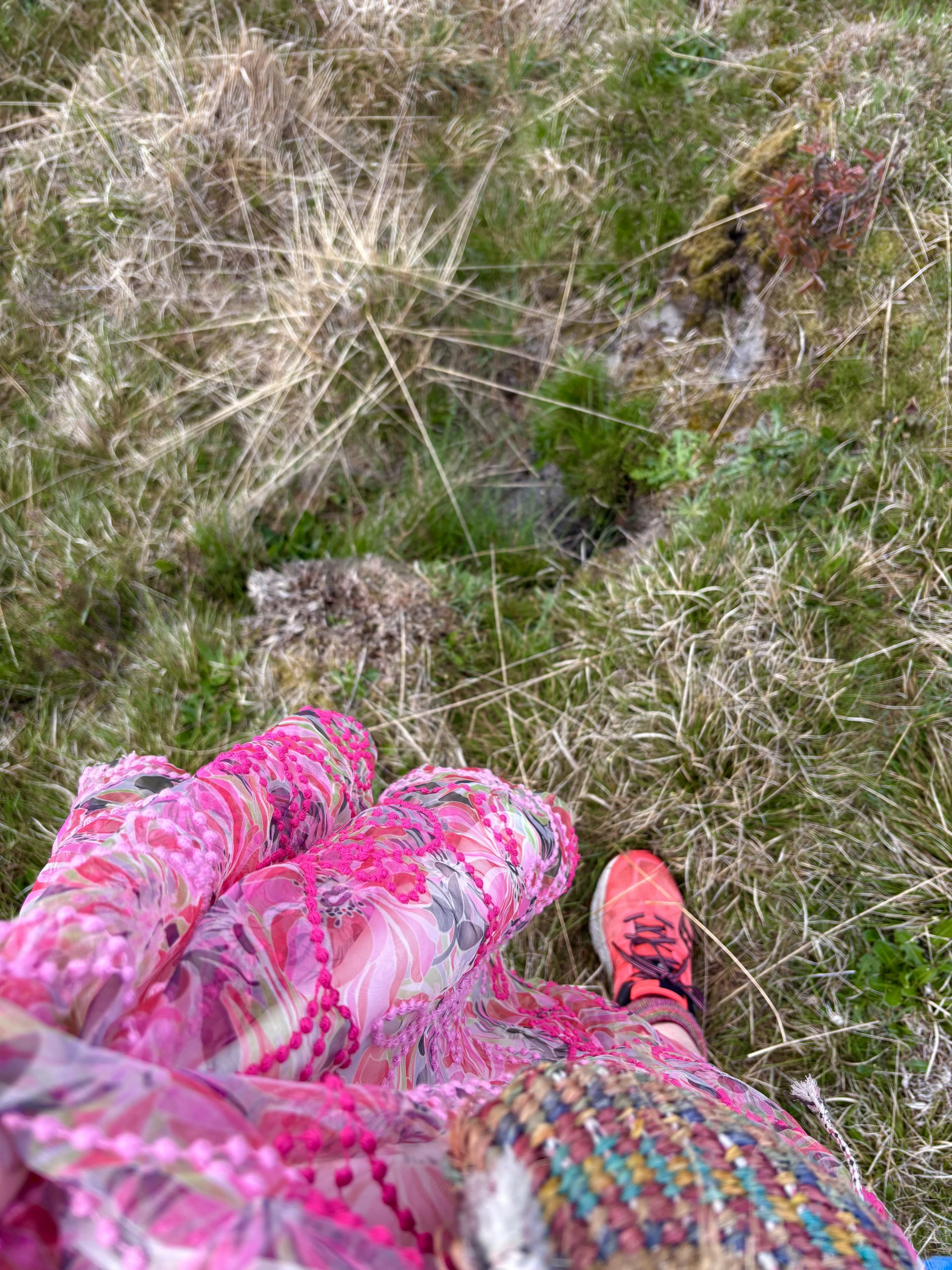 Ein Spaziergang im Frühling. Die Farben von meinem Rock konkurrieren mit dem frischen Grün. Am Horizont schimmert das Wasser auf dem Watt. Herrlich fühlt es sich, leicht und fröhlich. Ein Ehepaar mit Hunden kommt mir entgegen, lächelt, als wolle es sich ein wenig an meiner Buntheit sattsehen.