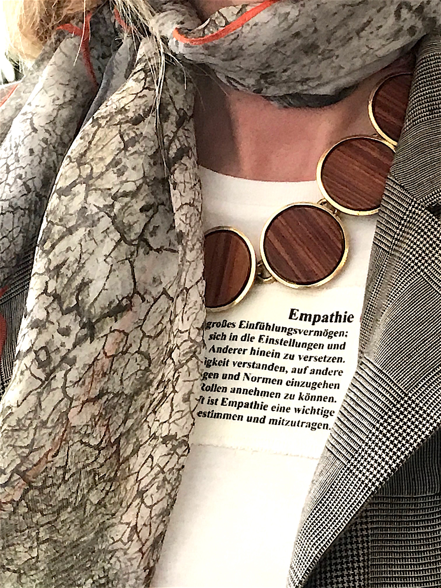 Andere schickten Umarmungen und Herzen. “Die Besonderheit Ihrer kreativen Arbeit läßt mich oft an Vincent van Gogh denken: ‚Die Normalität ist eine gepflasterte Straße – man kann gut darauf gehen – doch es wachsen keine Blumen auf ihr‘.” – Wie schön, es bestärkt mich sehr, meinen eigenen Weg zu gehen als Designerin und als Mensch. Ganz lieben Dank auch für die sms: “Sie pflegen Mode als Hochkultur und leben dies glaubhaft und visionär!” – Ich hatte es an anderer Stelle gerade ähnlich formuliert: Mode ist ein Kulturgut. – Die Freundin aus Kiel spricht amüsiert von “Kulturaustausch”, wenn sie ein Auswahlpaket wünscht. Und so gibt es vieles, vieles mehr, das weit in eine Privatheit hineinreicht und nichts anderes bedeutet als “We Care”.