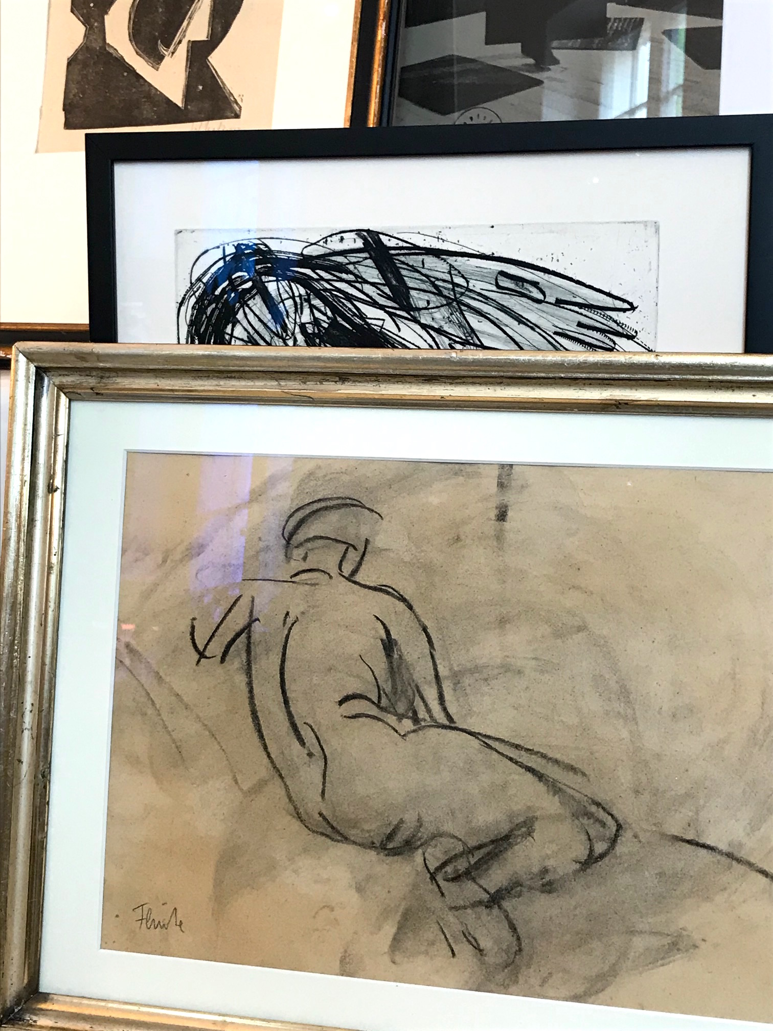 Abb: Fritz Flinte “Akt” (Galerie Herold), Vintage Abendkleid Calvin Klein, Schmuck Yves Saint Laurent