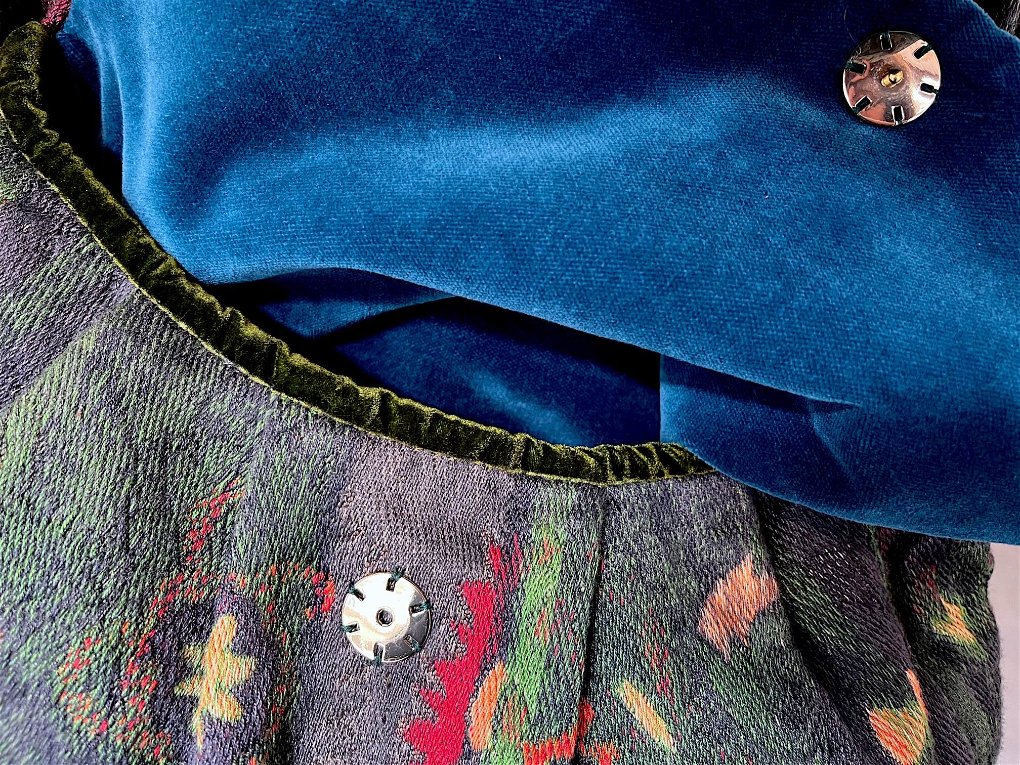 Die Verarbeitung ist sorgfältig, folgt dem Charakter des Stoffes. Schön, wie sich die Farben gegeneinander setzen. Es gibt eine kleine Innenstasche, der Verschluss ist ein großer Druckknopf.