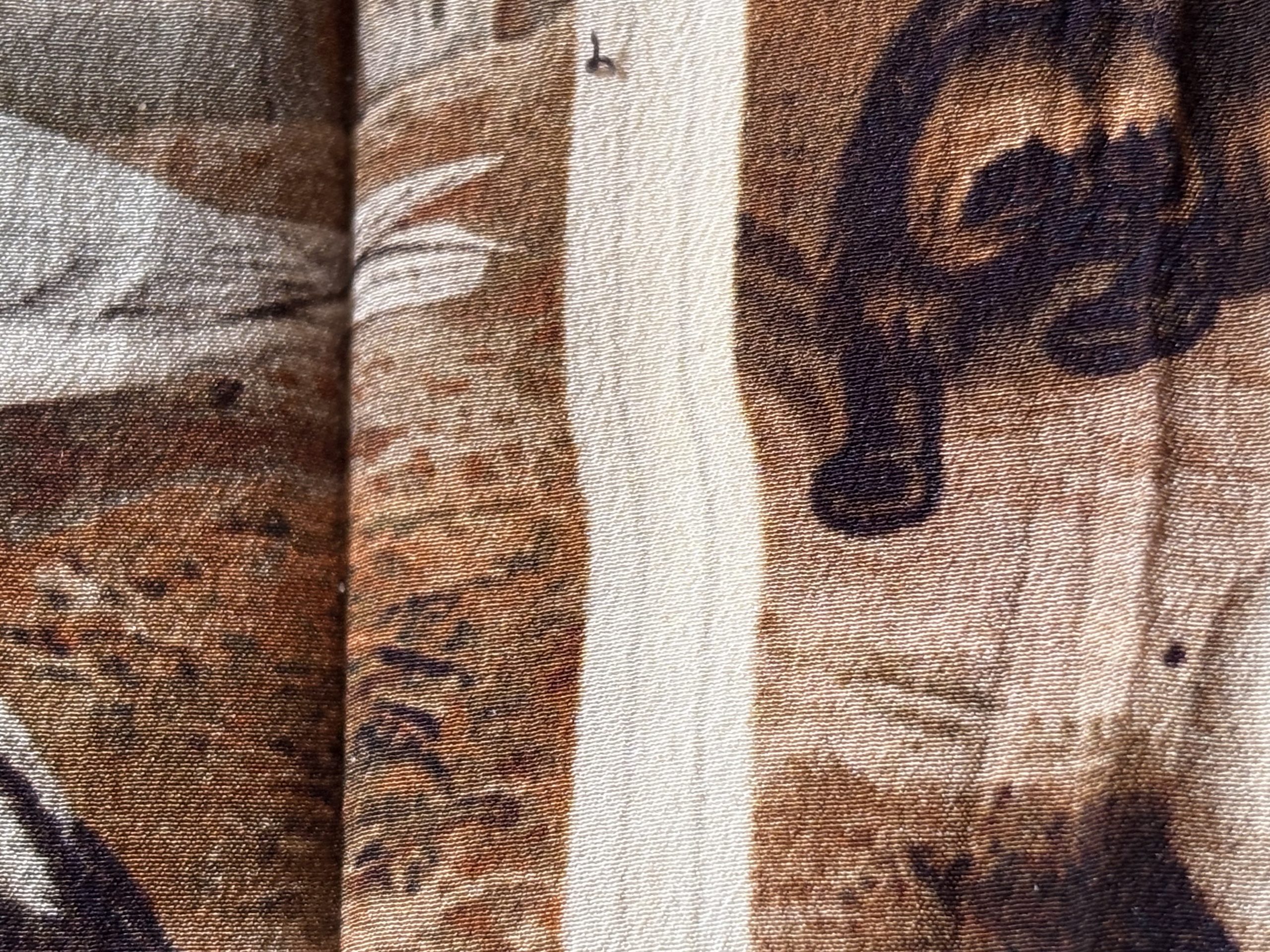 Nun fehlt nur noch die Entscheidung über die Größen, die sich schwer an den Fotos ausmachen. Für die Futterstoffe ist es relativ einfach, die Motive entsprechen in etwa den Vorgaben der Original-Tafeln. Aber die Seide mit einer Stoffbreite von 140cm besitzt andere Proportionen, damit sie an uns gut aussieht und erzählerisch zum Blazer oder Mantel passt.