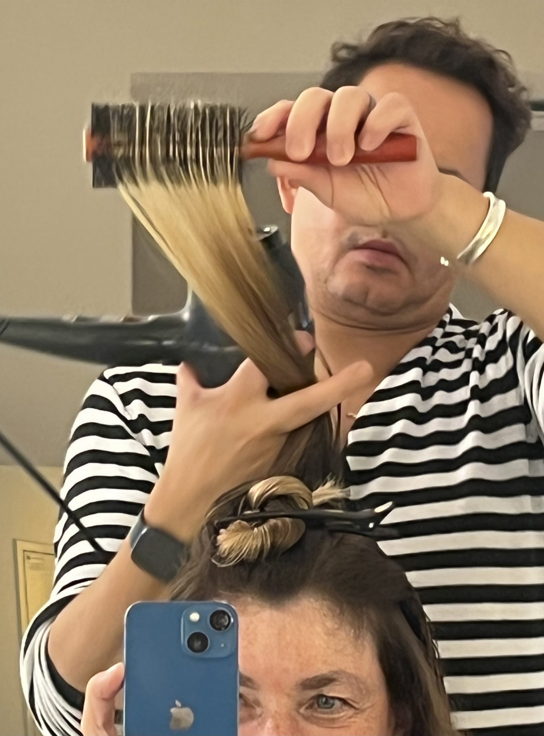 Es bestehen klare Abhängigkeiten, nicht jeder darf an meine Locken ran. Wind, Sonne und Meer haben aus den langen Haaren einen unzähmbaren (heißt: unkämmbaren) Beachlook gemacht. Jefferson, Hairstylist mit New York Vita, muss es richten.