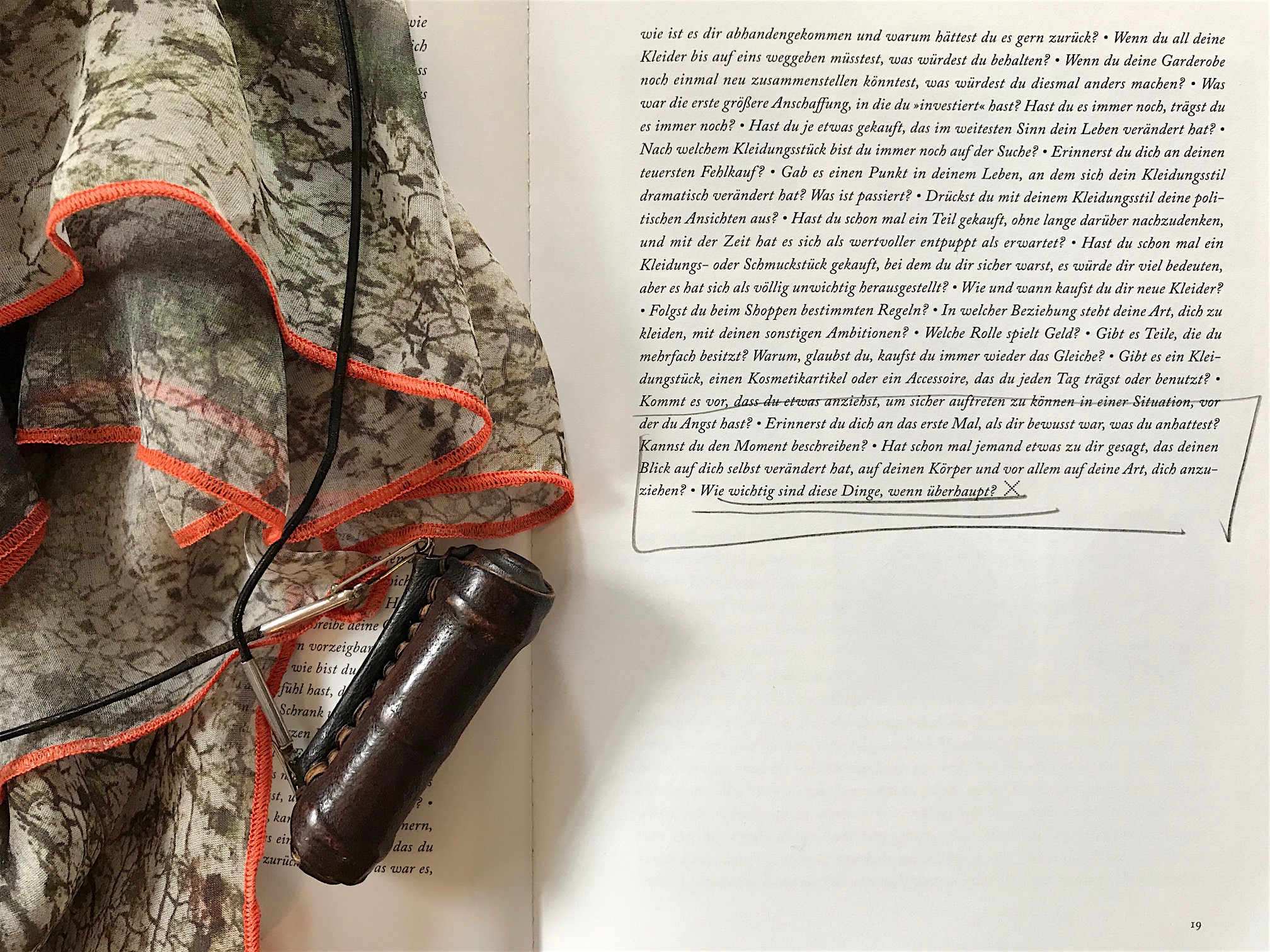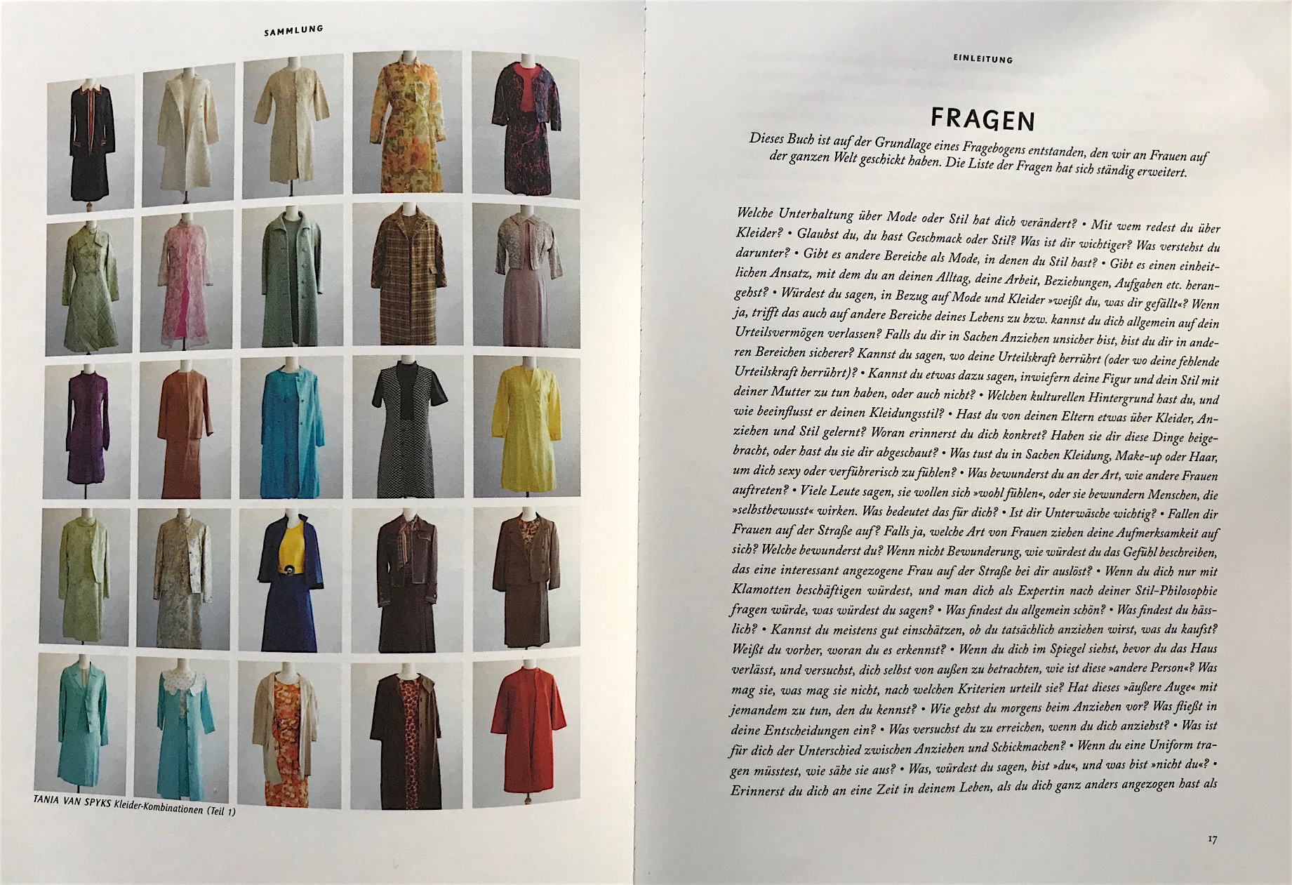 Das Buch ist auf der Grundlage eines Fragebogens entstanden an Frauen auf der ganzen Welt, einige davon berühmte Künstlerinnen, Schriftstellerinnen, andere ganz normal in ihren Alltag verstrickt. Was sagt Kleidung über uns und unser Leben aus? Welchen Einfluss haben Mütter, Freundinnen, Ehemänner? Was erzählen sie über unsere Wünsche, Ängste, Träume?