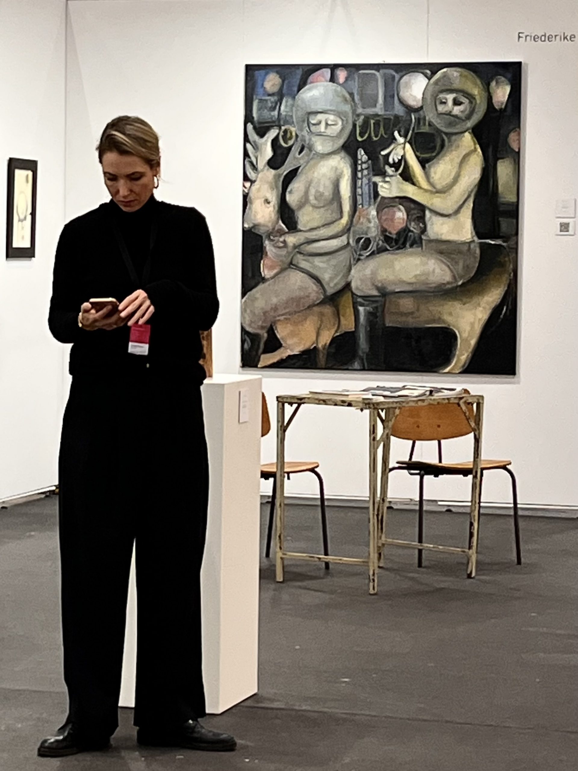 Während wir uns unterhalten, ausgeblendet das hektische Messeumfeld, spüre ich mehr und mehr in ihr diesen uralten Typus des Künstlers, der schaffen muss, jeden Tag, um sich in Balance zu halten zwischen den Extremen, der eigenen Empfindsamkeit sowie allem, was in uns und um uns herum ist. Ich frage sie, wie sehr sie das Frau-sein thematisiert. Sie schaut mich an und in ihrem Blick liegt die ganze Wucht ihrer Persönlichkeit: “Ich bin ein Frau”, antwortet sie schlicht.