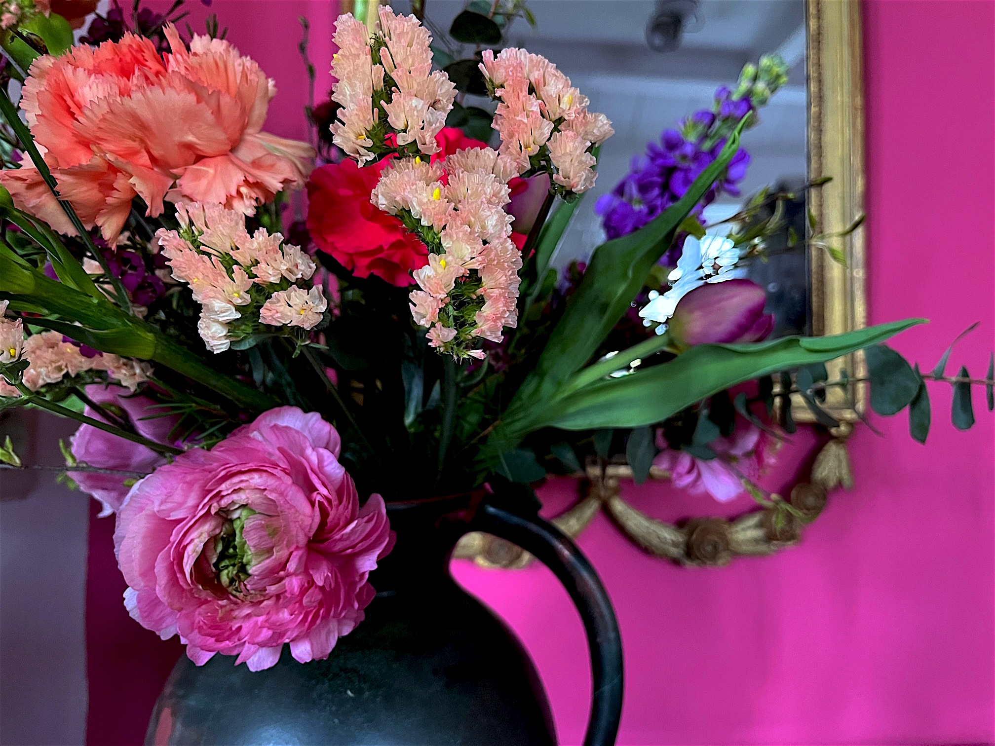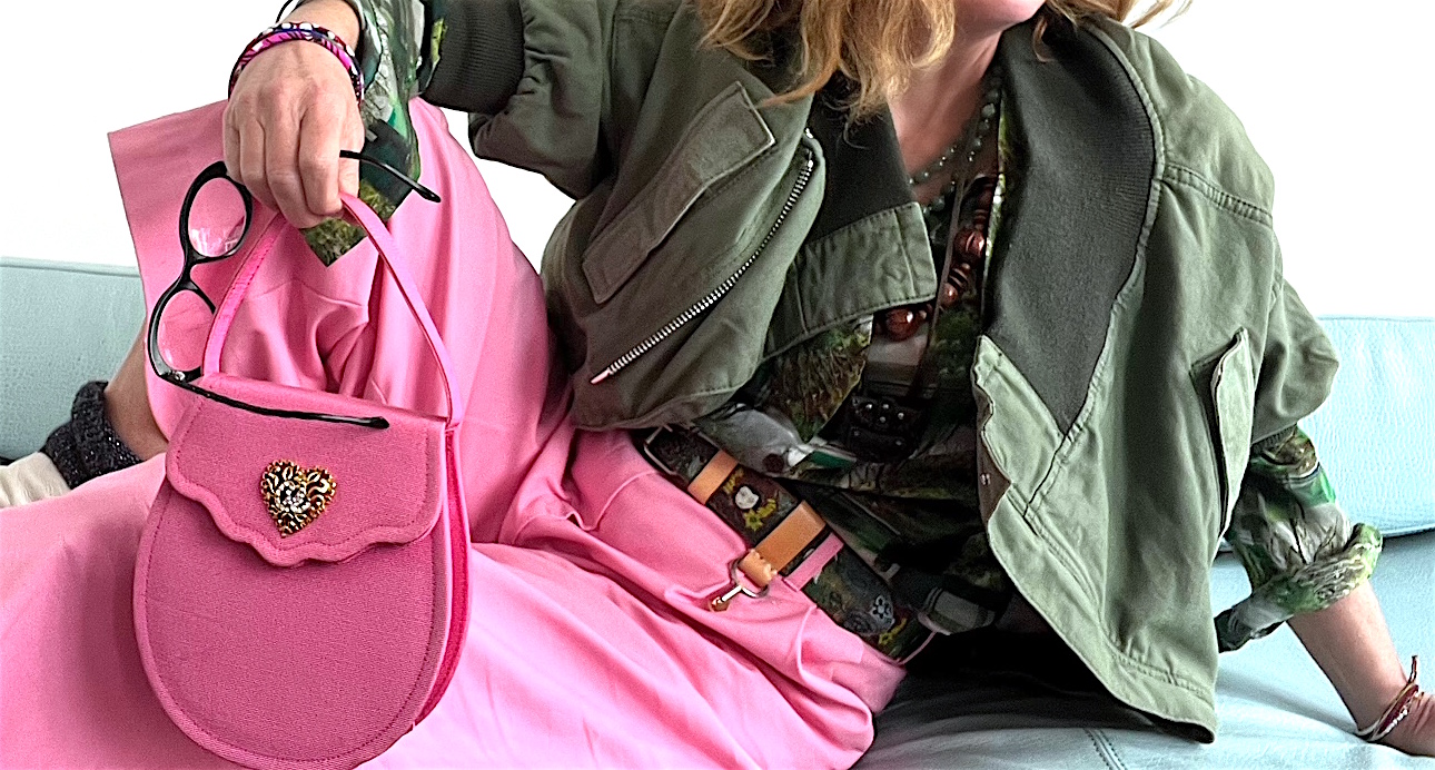 Wir können uns ja mal üben im Stylen, so wie Kismet mit dem bunten Blumenstrauß im Arm. Ein wenig Gold gehört dazu, ein paar Ketten wild übereinander, ein kurzer frecher Rock in pink (Roma e Toska), oder wie ich mit der coolen Vintage Jacke von Comme des Garçons und der couturigen Catwalk Tasche von Christian Lacroix (€ 650) lässig in der Hand.