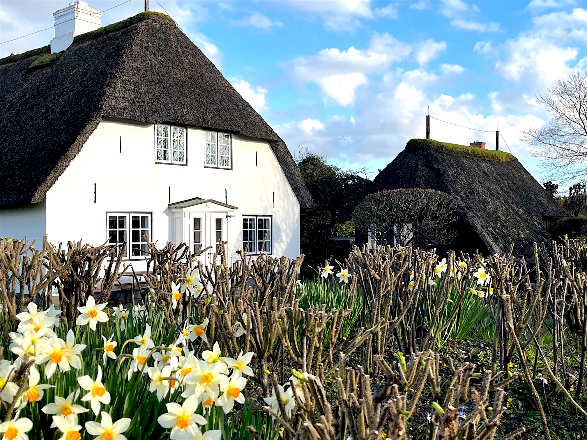 Ein paar Bilder möchte ich Euch nicht vorhalten. Sie künden den Frühling an auf der Insel. Die Vögel aus Südafrika trudeln ein, die Wildgänse futtern sich voll auf den saftigen Wiesen, um dann weiter nach Sibirien zu fliegen. (Ob die wissen, dass sie über Kriegsgebiete fliegen?) Die Luft ist frisch. Noch flirrt sie nicht über den Gräsern sondern trennt Himmel und Erde scharf voneinander ab. Die Wolken bauschen sich auf wie die Federbetten meiner Großmutter.