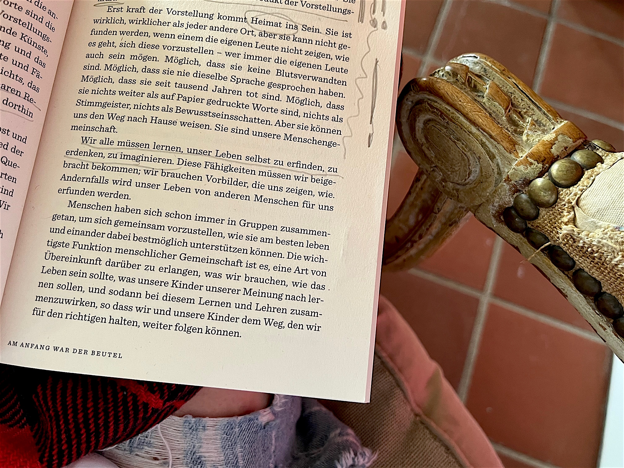 Tut mir leid, nun wird der Beitrag doch länger: Einen wichtigen Punkt verbindet Le Guin mit der Vorstellungskraft, ich habe ein fettes Ausrufezeichen daneben gemacht. “Heimat ist ein Produkt der Vorstellungskraft.” Hierfür braucht es Vorbilder, die eigenen Leute, die es einem zeigen: