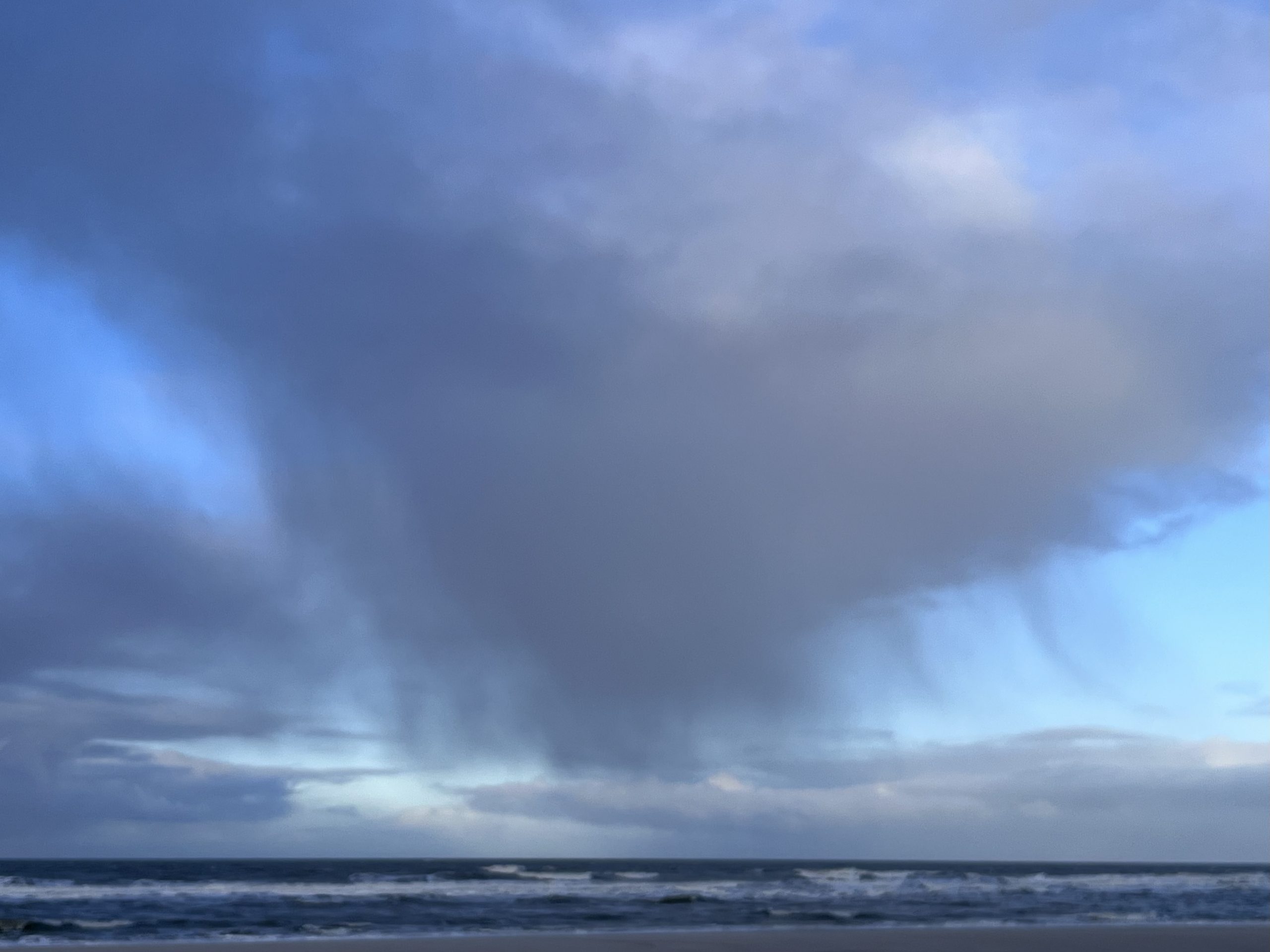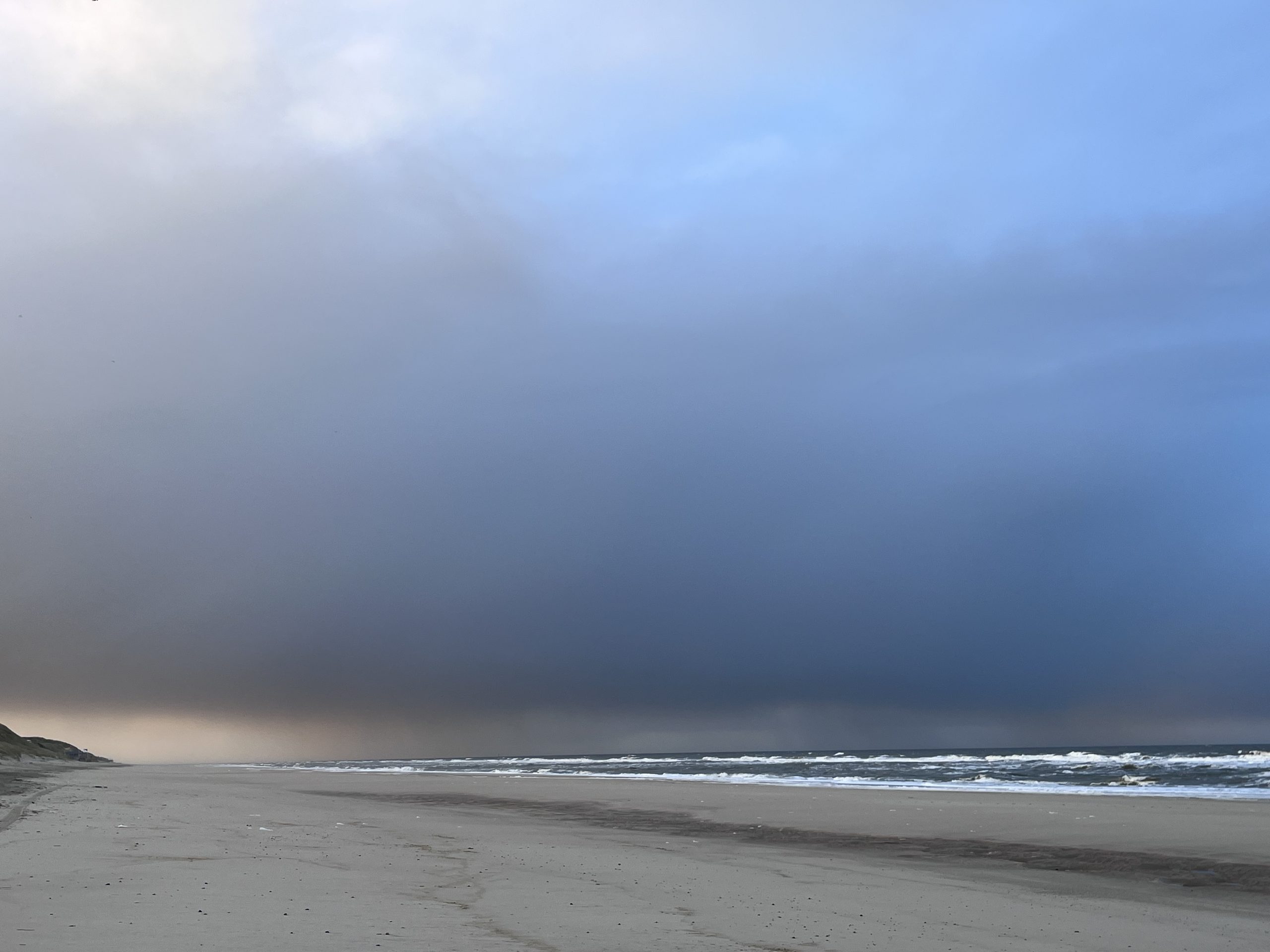 Dunkel hängt der Himmel über dem Meer. Oh, bitte, kein Regen. Ich weiß nicht, ob das meiner roten Valentine gefallen wird.