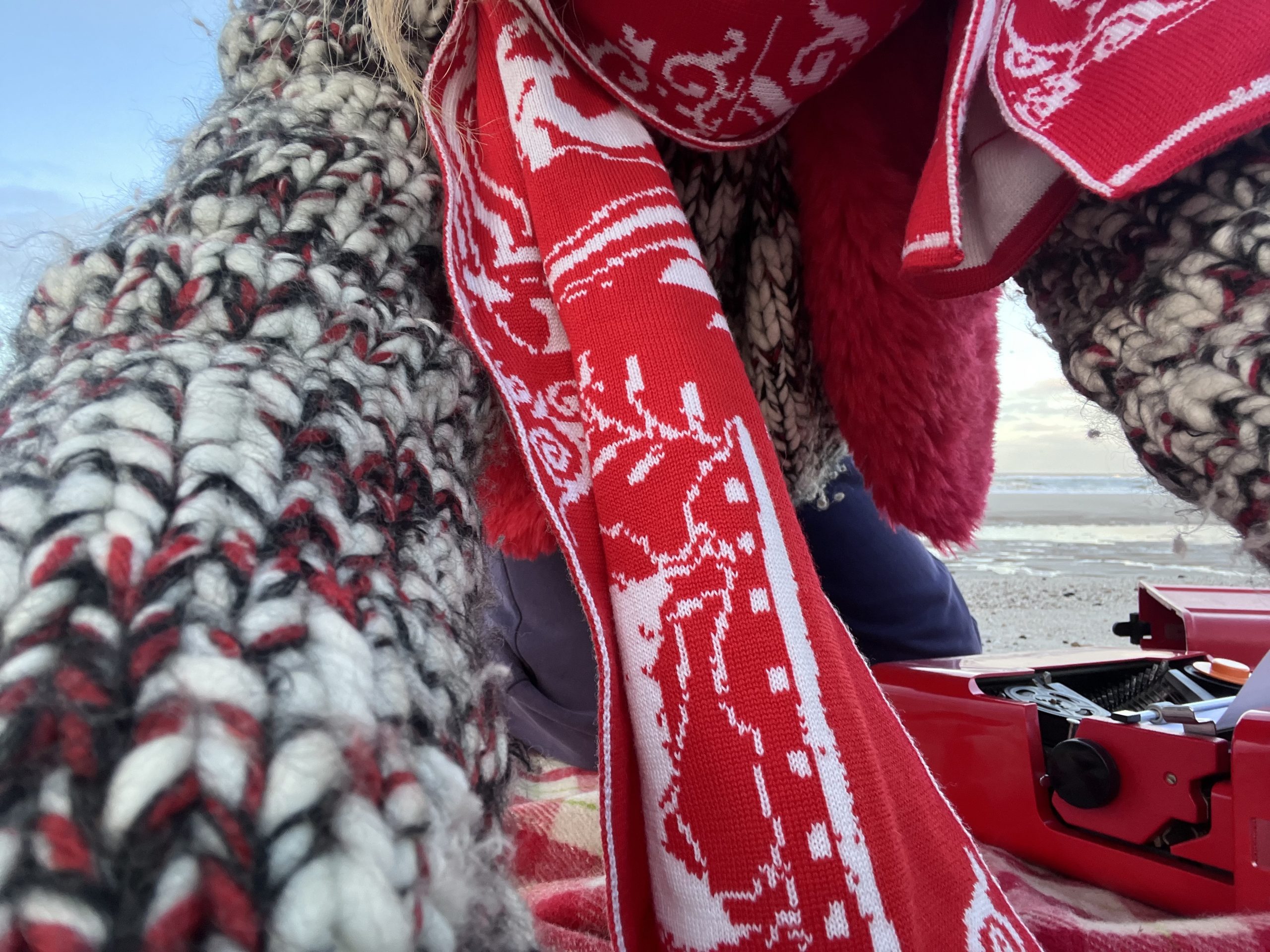 Der Krimi-Schal in rot von Bestsellerautor Eric Weißmann ist am vergangenen Freitag aus der Strickerei in der Poolstrasse 30 eingetroffen. Er ist um zwei Kacheln verlängert, mit einem Preis wie das dazugehörige Buch Seiten haben wird. Das gibt es gratis mit Erscheinen ab Frühjahr 2024 nachgeliefert.