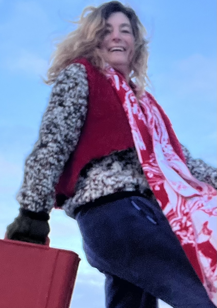 Auf mein stilles Geheiss pustet der Wind die Wolken davon, so dass ich mich nach dem Eisbad dekorativ auf der Wolldecke ausbreiten kann. Die kuschelige Fellweste, der rote Krimi-Schal, alles will vorteilhaft in Szene gesetzt werden.