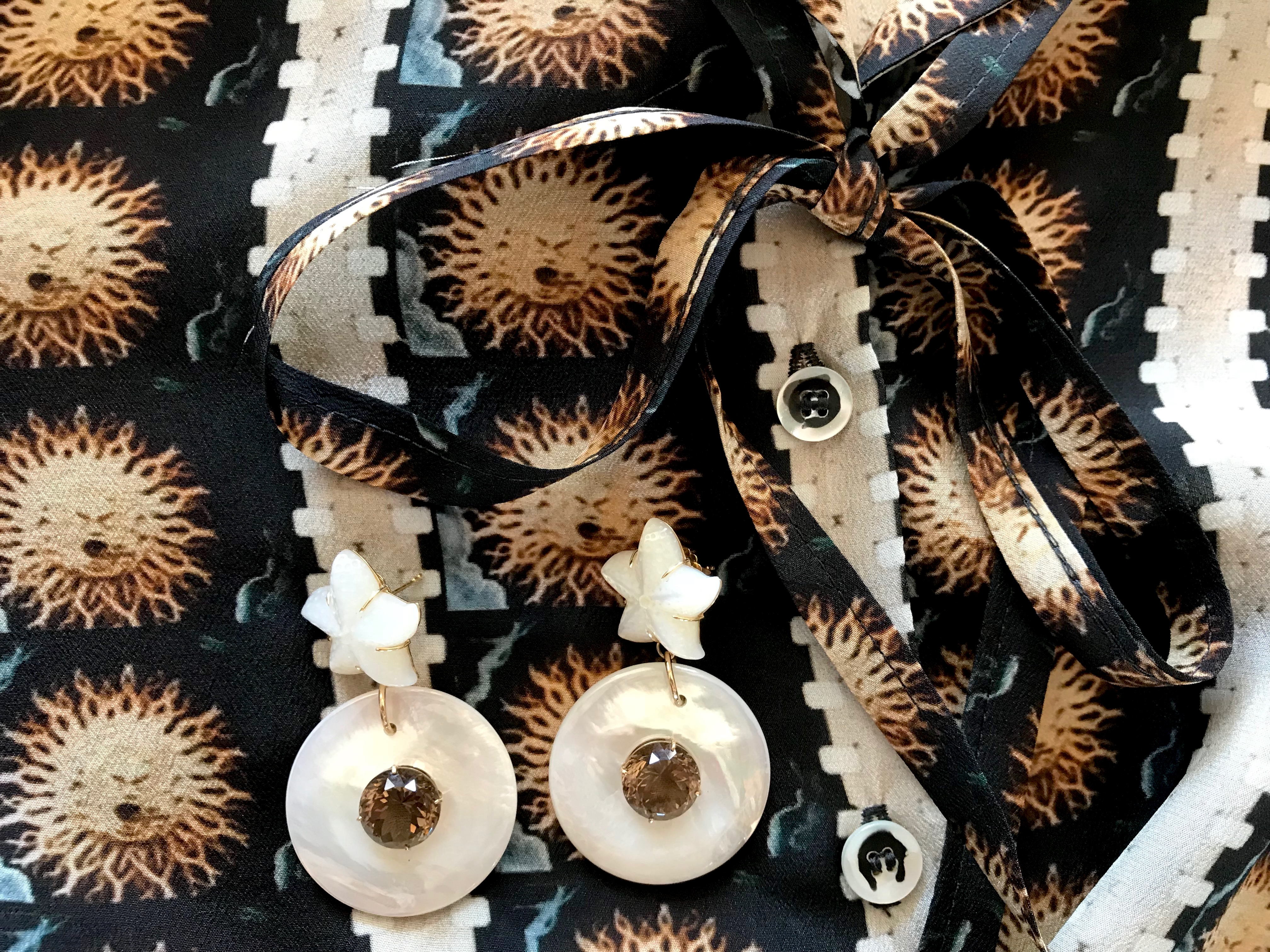 Abb.: Eismeerkönige. Perlmuttscheiben, Perlmuttstern, Rauchquarz, 585 Gelbgold, € 1.400