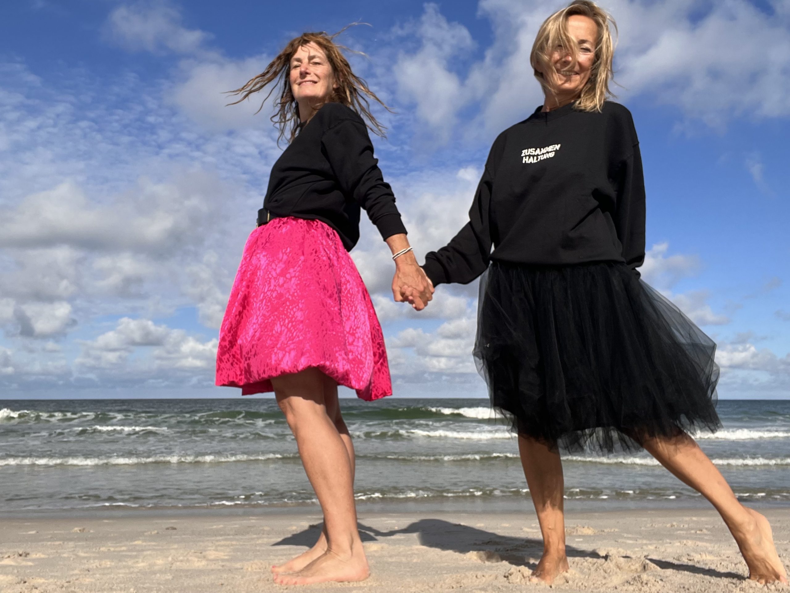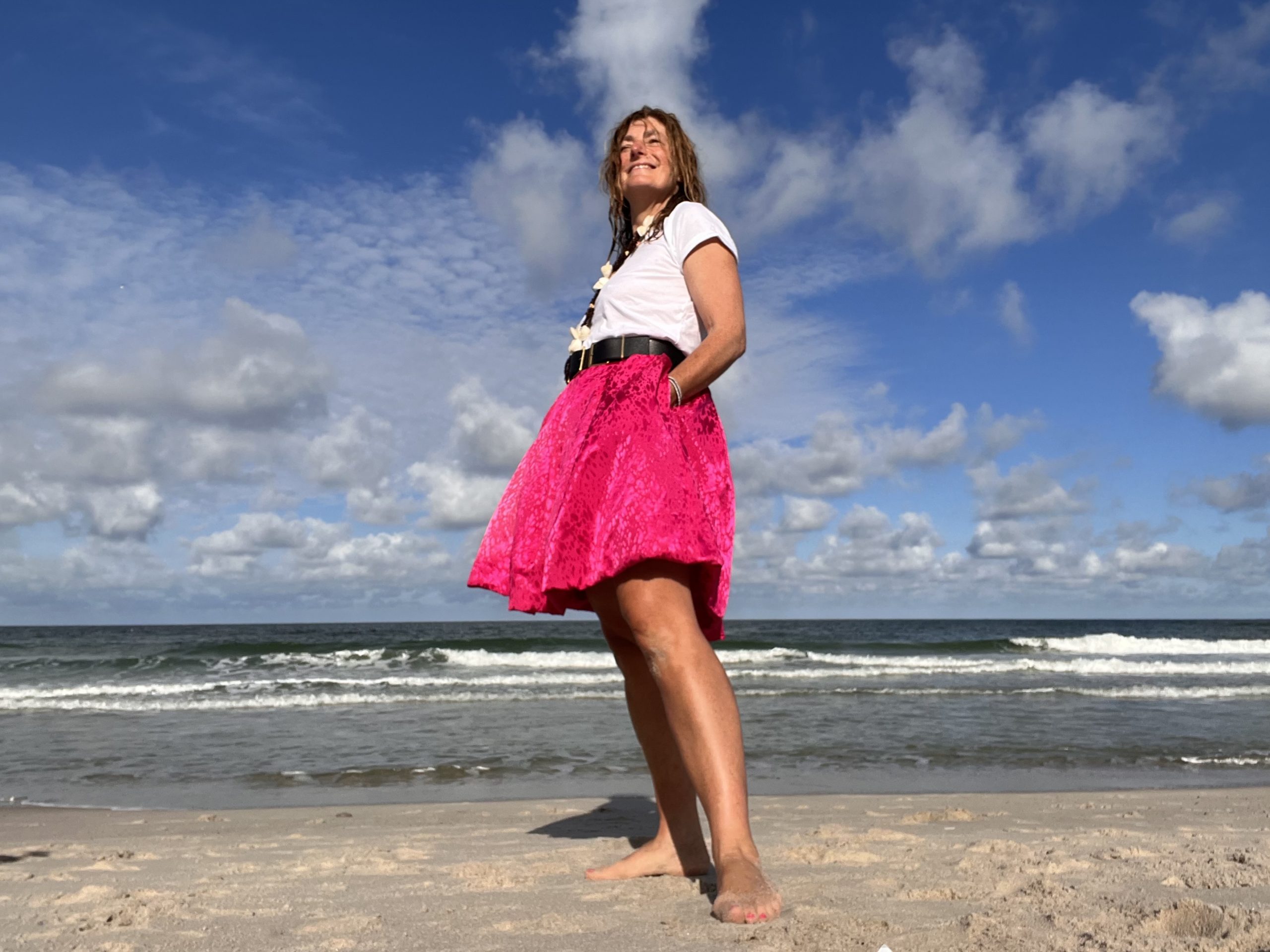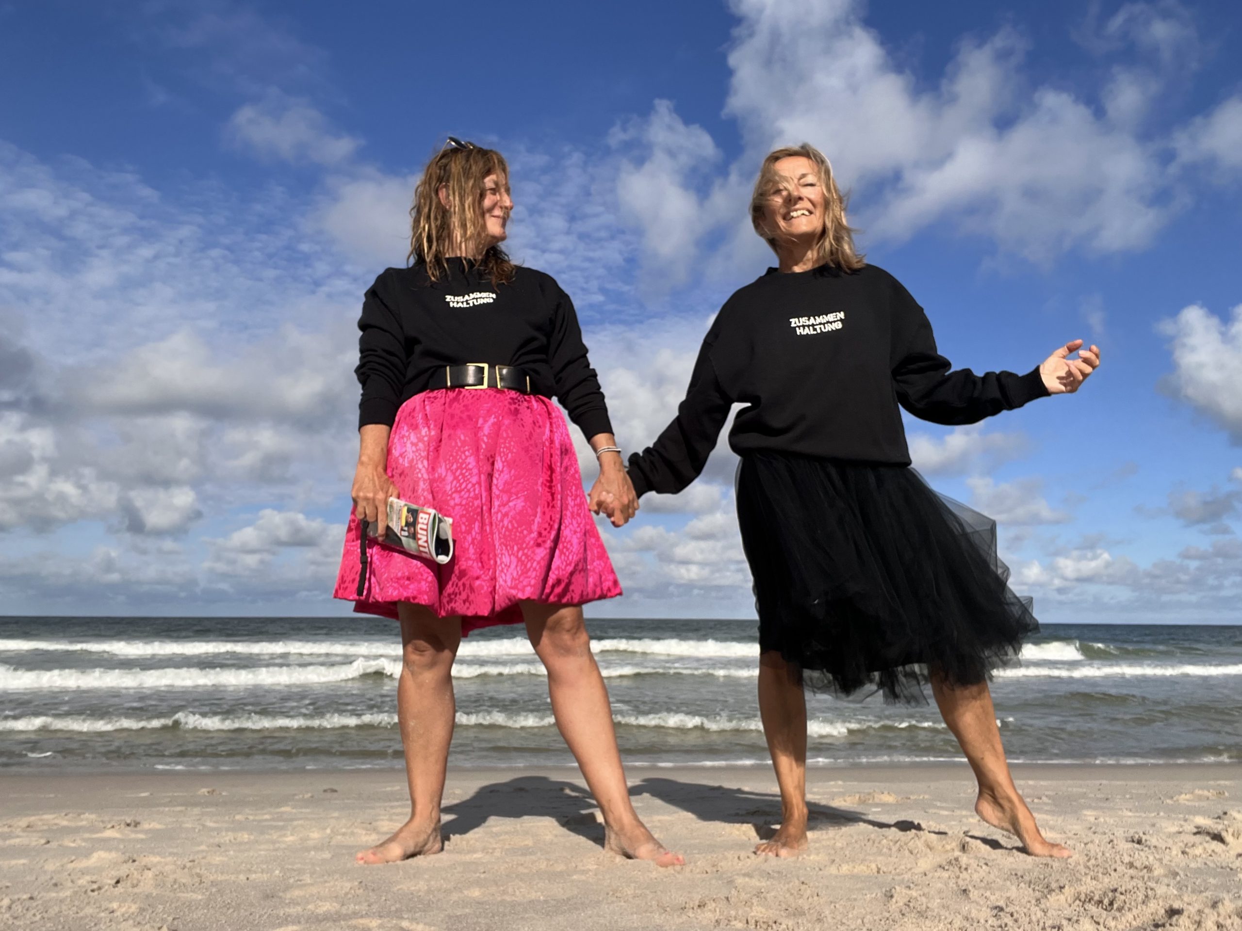 Am Strand treffe ich Madame la Petite, im wahren Leben Professor Dr. Bettina Borisch, CEO der World Federation of Public Health Associations (WFPHA) in Genf. Ich gebe zu, wir sind ein wenig vorbereitet, was den Look anbelangt. Ein geplantes “glamorous” Fotoshooting passend zur BUNTE (der Rock vom Gala Event).