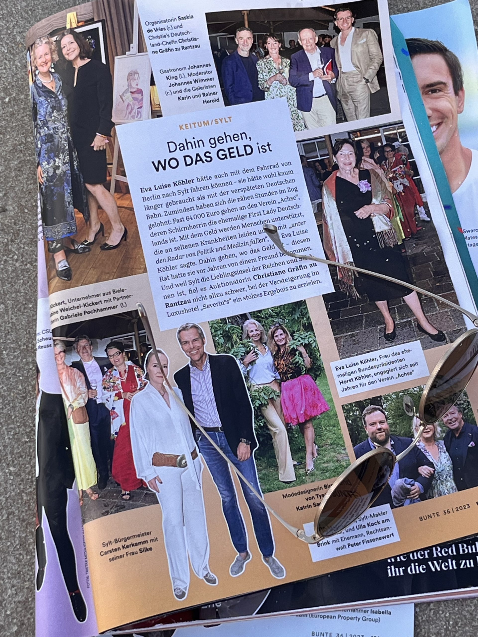 So funktioniert Charity: “Dahin gehen, wo das Geld ist”, so Saskia de Vries, die den Abend für die Achse e.V. im Hotel Severin’s in Keitum organisierte. Christiane Gräfin zu Rantzau (Christie’s) übernahm temperamentvoll die Versteigerung von Kunst und besonderen Gelegenheiten. Der Erlös geht in die Forschung, Datensammlung und Hilfe für die Betroffenen von seltenen Krankheiten. Schirmherrin ist Eva Luise Köhler, ehemalige First Lady und Frau des damaligen Bundespräsidenten Horst Köhler.