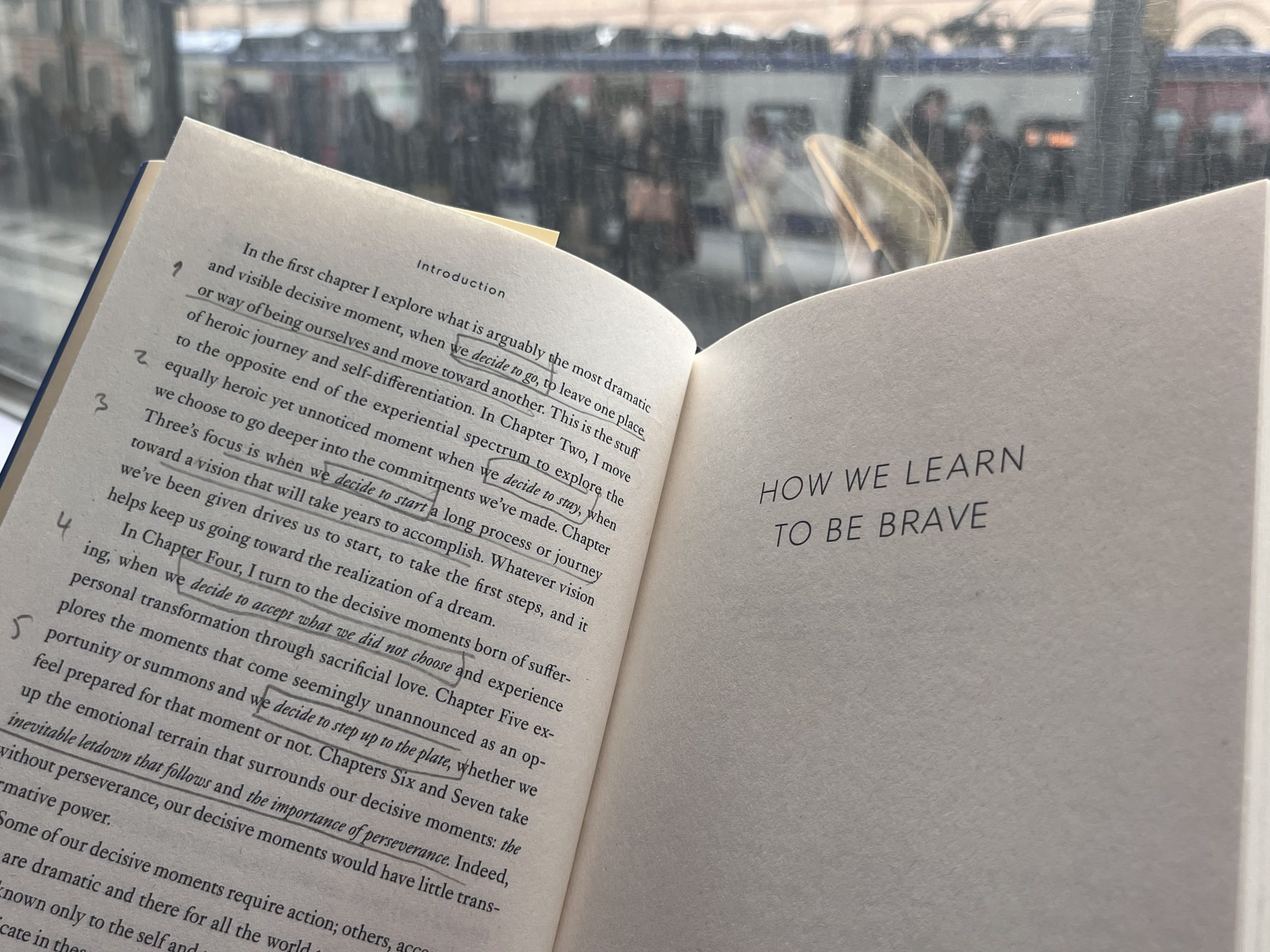 Budde spricht von “decisive moments”, den Wendepunkten im Leben, für die wir uns vorbereiten sollten, um sie zu erkennen und zu nutzen, genauso wie diese Schlüsselerlebnisse ihre “Nachbereitung” brauchen, um uns nicht in ein tiefes Loch fallen zu lassen und darüber ihre Kraft der Veränderungen verlieren. Sechs Kapitel führt sie auf: Gehen oder Bleiben. Starten. Akzeptieren, was wir nicht ändern können. Die Bühne betreten. Sich im Stichgelassen fühlen und trotzdem Ausdauer bewahren. (Manchmal noch eine Runde drehen, würde ich gern ergänzen.)