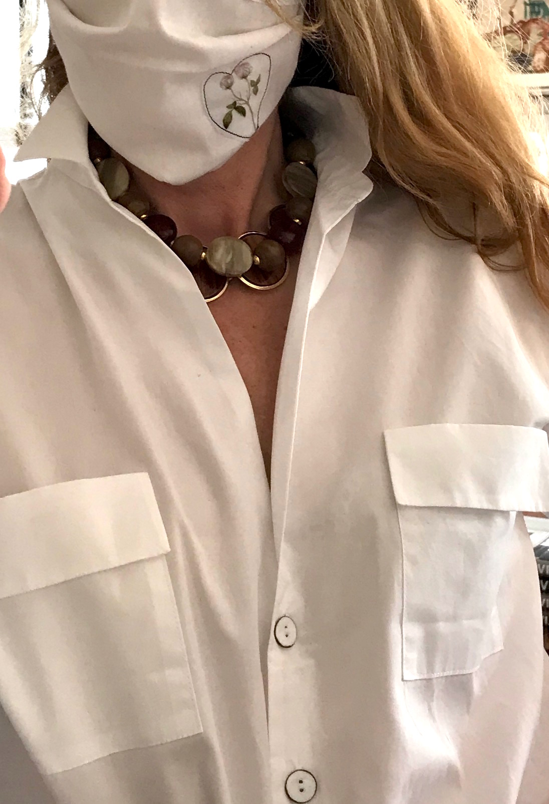 Genug der Erinnerungen. Wir haben den Baumwoll-Stoff mit den Rosen aus dem berühmten Garten des 18. Jahrhunderts von Schloss Wilhelmshöhe wieder aus dem Regal gezogen, die Blüten ausgeschnitten und auf die Masken genäht. Parallel arbeiten wir an einem neuen Prototypen, der das gleiche Motiv besitzt. So gilt wie überhaupt im Leben: Es gibt nahezu nichts, das nicht für etwas gut ist.