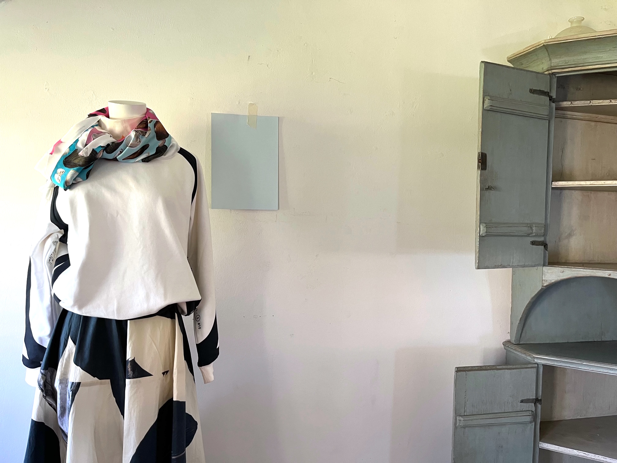 Dazu kommt eine sanfte Alternative auf der Wand ganz links neben dem schwedischen Eckschrank aus dem späten 18. Jahrhundert. Der Rest wird weiß und dazwischen noch der cremige Papierton, wie er auf dem großen Muschelprint zu sehen ist.