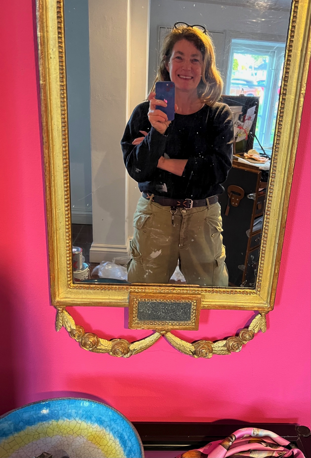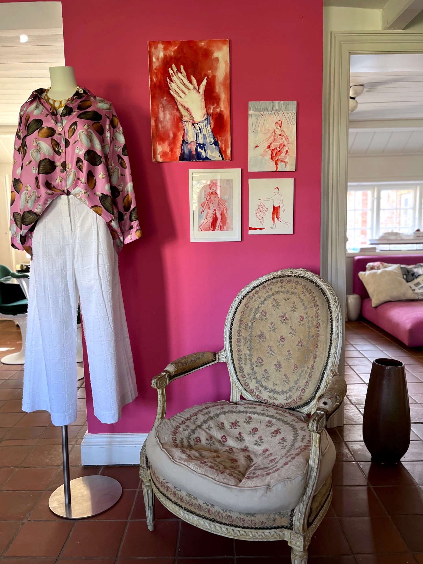 Sonntag, keine Pause, ich male, die Sonne geht unter, der Mond steht über dem Haus. Es leuchtet Pink durch die Fenster. Montag, ein Spaziergang mit Madame La Petite, ein Sprung ins eisige Meer, ebenfalls keine Pause, ich male. Erste Besucher schauen rein, magisch angezogen von meinem Pink.