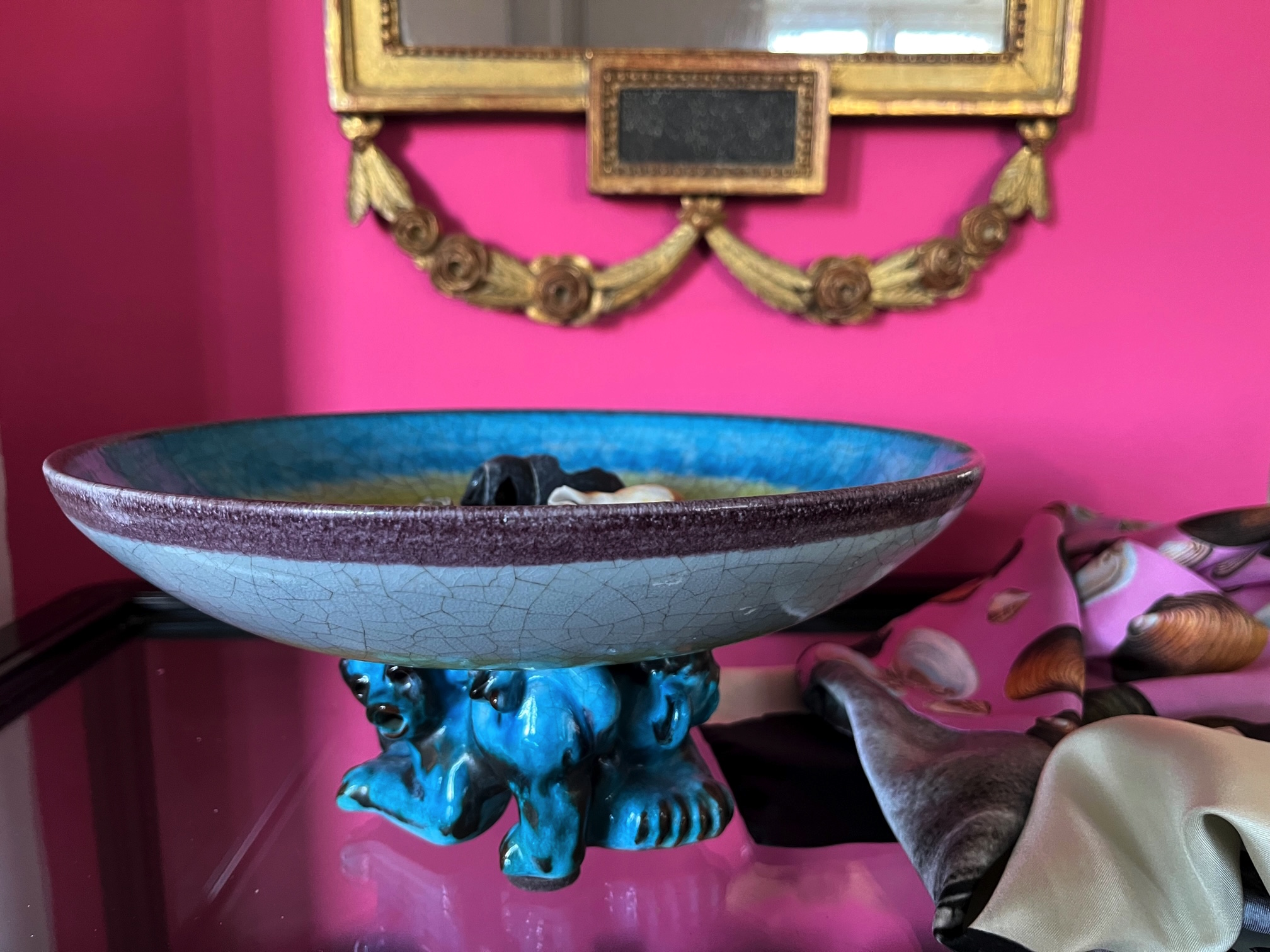 Dazu die Keramik aus den zwanziger bis fünfziger Jahren, Accessoires, Schmuck von Yves Saint Laurent in den Vitrinen. Ich singe laut mit Charles Aznavour, der den ganzen Tag schon im Loop aus meinem Computer tönt. Dann die Doors mit “Morrison Hotel”, ich singe noch lauter und pinsel dabei. Die Küche oben ist ebenfalls gestrichen, ein wenig Leiterakrobatik, hatte die Höhe der Dachschräge vergessen. Die Bilder hängen wieder an der Treppenwand.