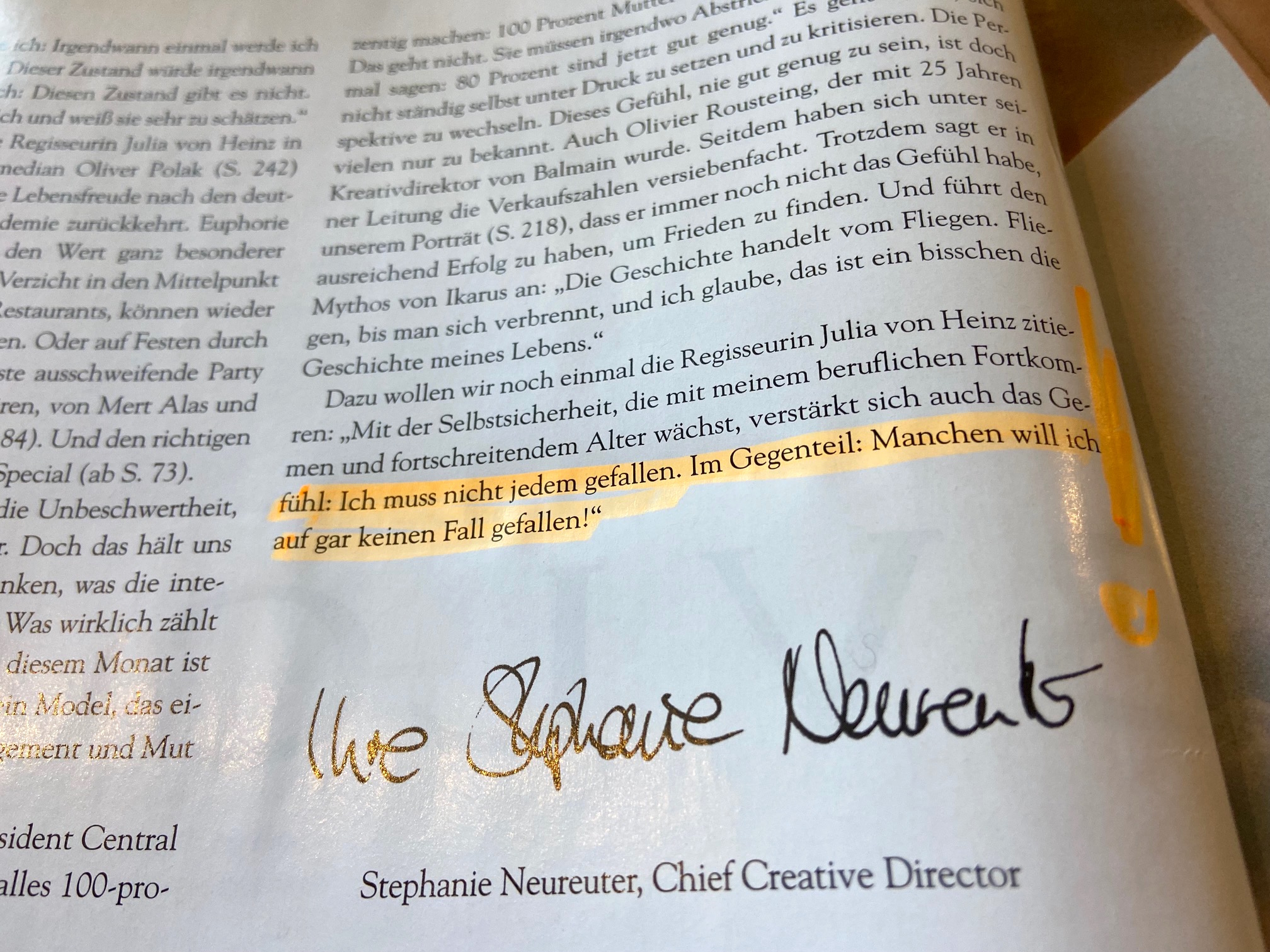 Das Editorial der Vogue November-Ausgabe kommt mir gerade recht: “Ich muss nicht jedem gefallen”, steht dort tatsächlich. So ein erstaunlicher Satz in einem Magazin, das auf “gefallen” ausgerichtet ist, in dem es um die äußere Attraktivität geht und das richtige Gefühl, dauerhaft verführerisch zu sein, verbunden mit einem permanten Glückzustand.