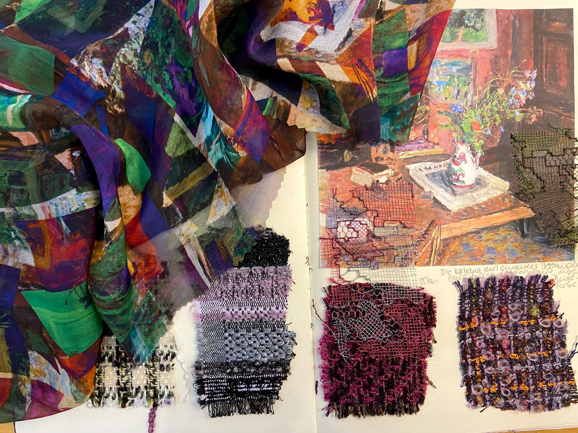 Die Farben stimmen und somit gab es keine Zeit mehr zu verlieren, das Motiv für den Futterstoff, den Crêpe de Chine (Blusen) und den Seidenchiffon für die Schals und Tücher in die Produktion zu geben. Wie immer spät, aber Marilyn Monroe kam auch nie rechtzeitig zu ihren Auftritten …