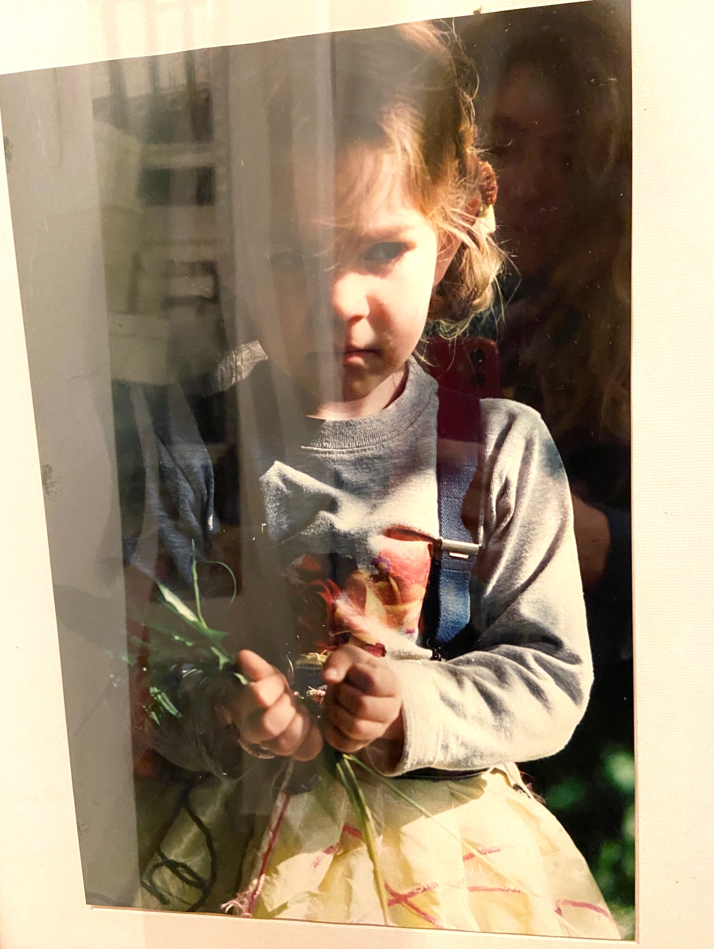 Abb. Toska mit vier Jahren in meinen ersten selbstgenähten Modellen. Ihre Collage entstand zu dieser Zeit aus buntem Papier und Stoffservietten, 2001.