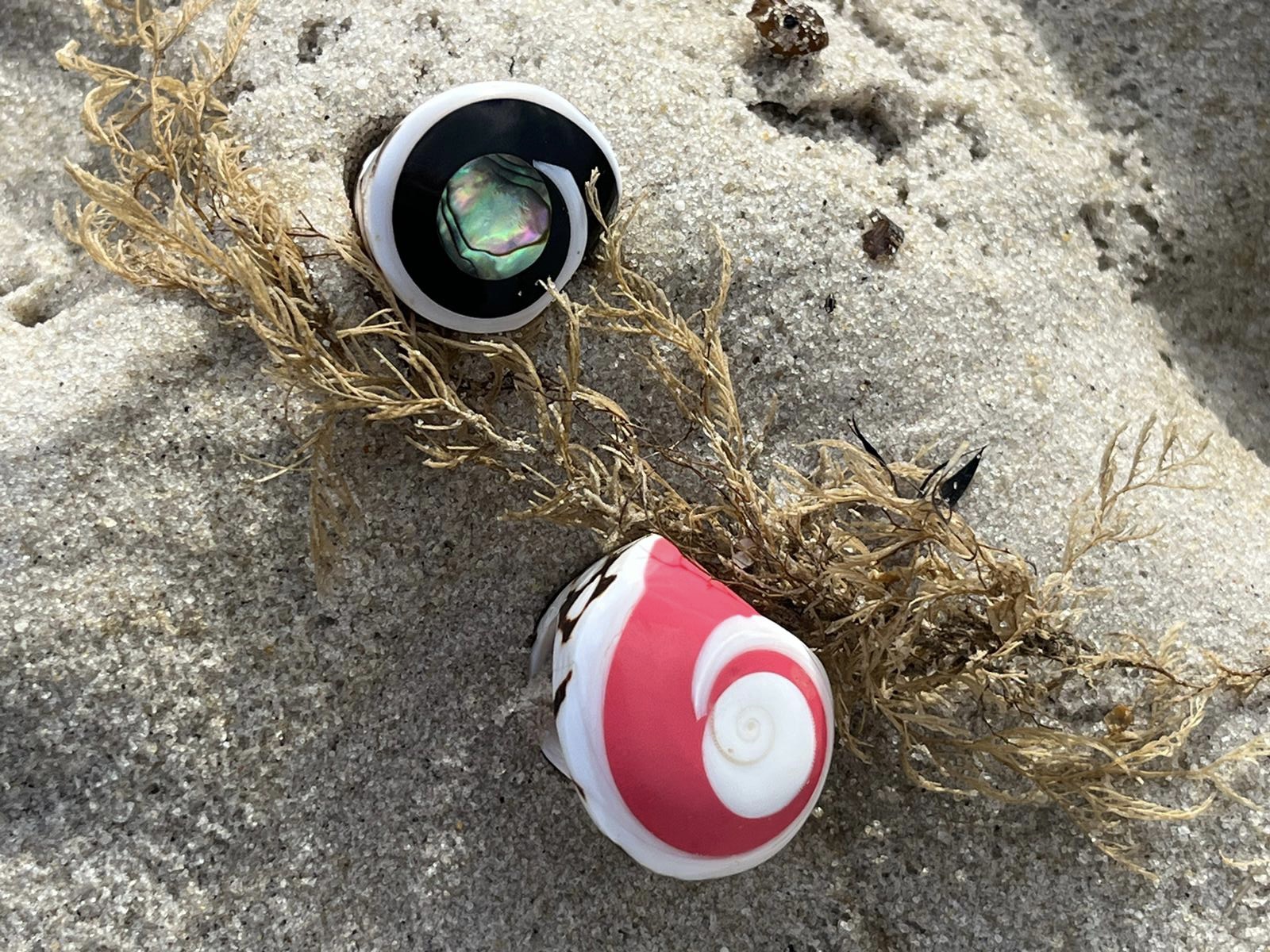 La Réunion Muschelringe, € 120, Bunte Sebu-Horn Armbänder, € 69