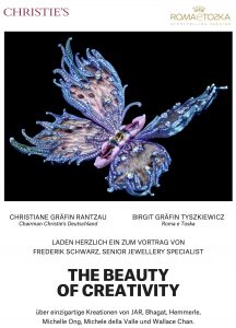 Aber noch ist der Sommer nicht zu Ende. Es gibt noch ein paar Events. Morgen laden Christiane Gräfin zu Rantzau, Chairman Christie’s Deutschland, und ich zu einem Vortrag ein von Frederik Schwartz, Senior Experte Christie’s Fine Jewellery, 17.8.2023, ab 18:30 Uhr. Und am Freitag, den 18.8, ab ca. 17:30 Uhr ist Eric Weißmann unser Talkgast. Voranmeldung unter: birgit@romaetoska.de.