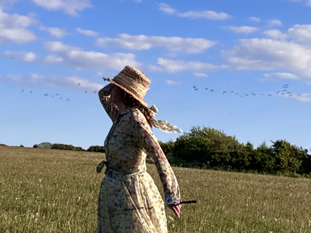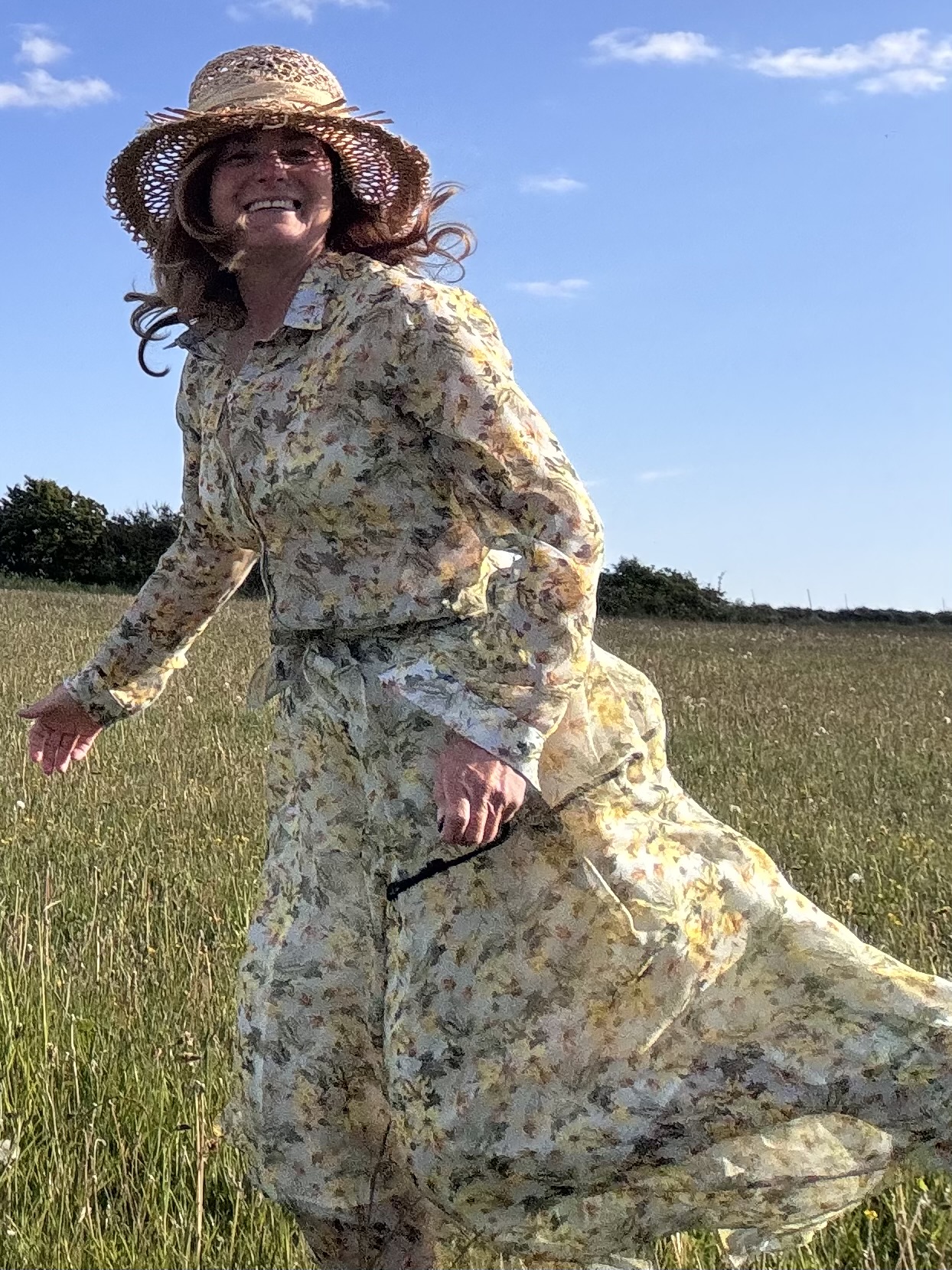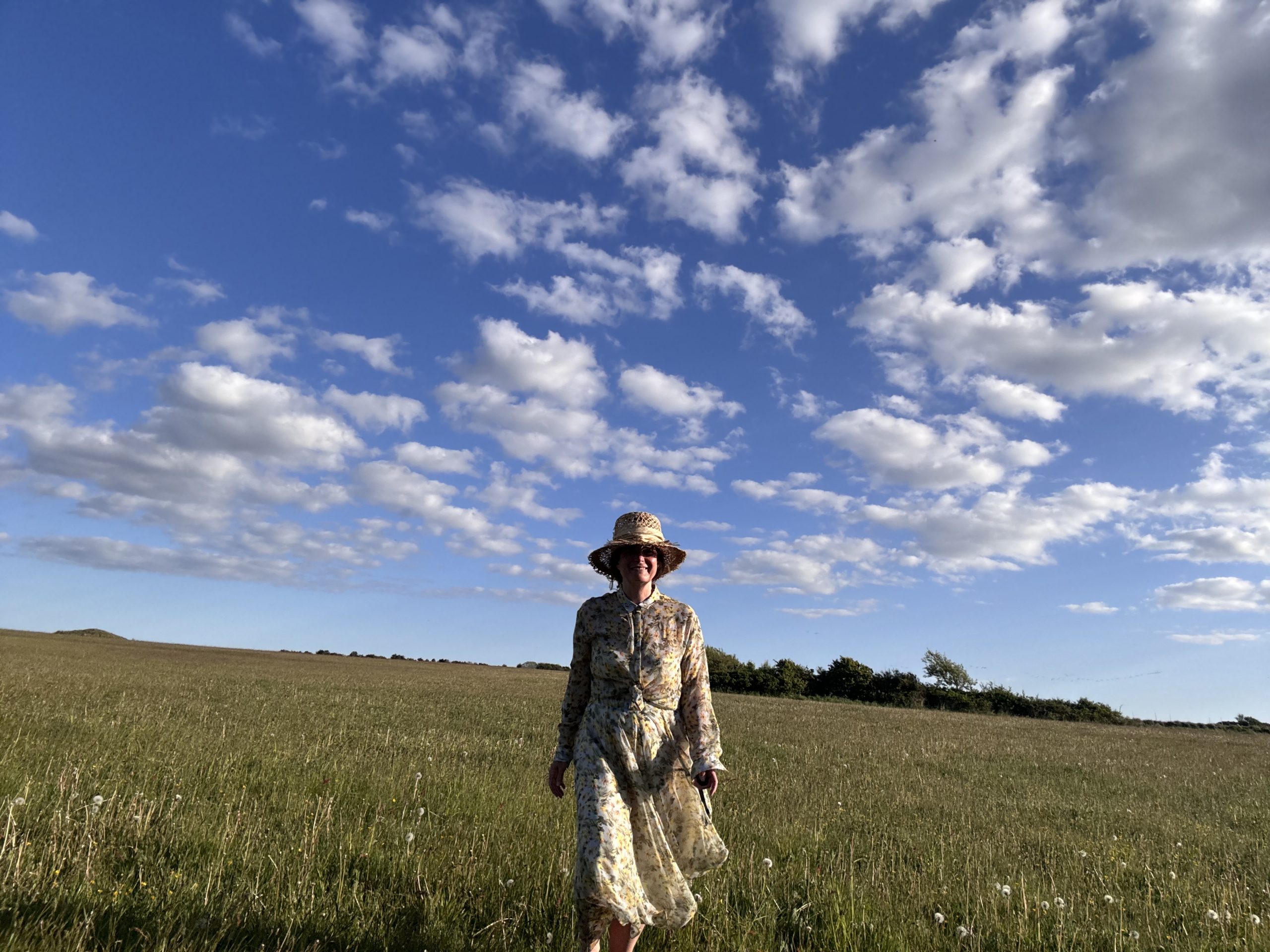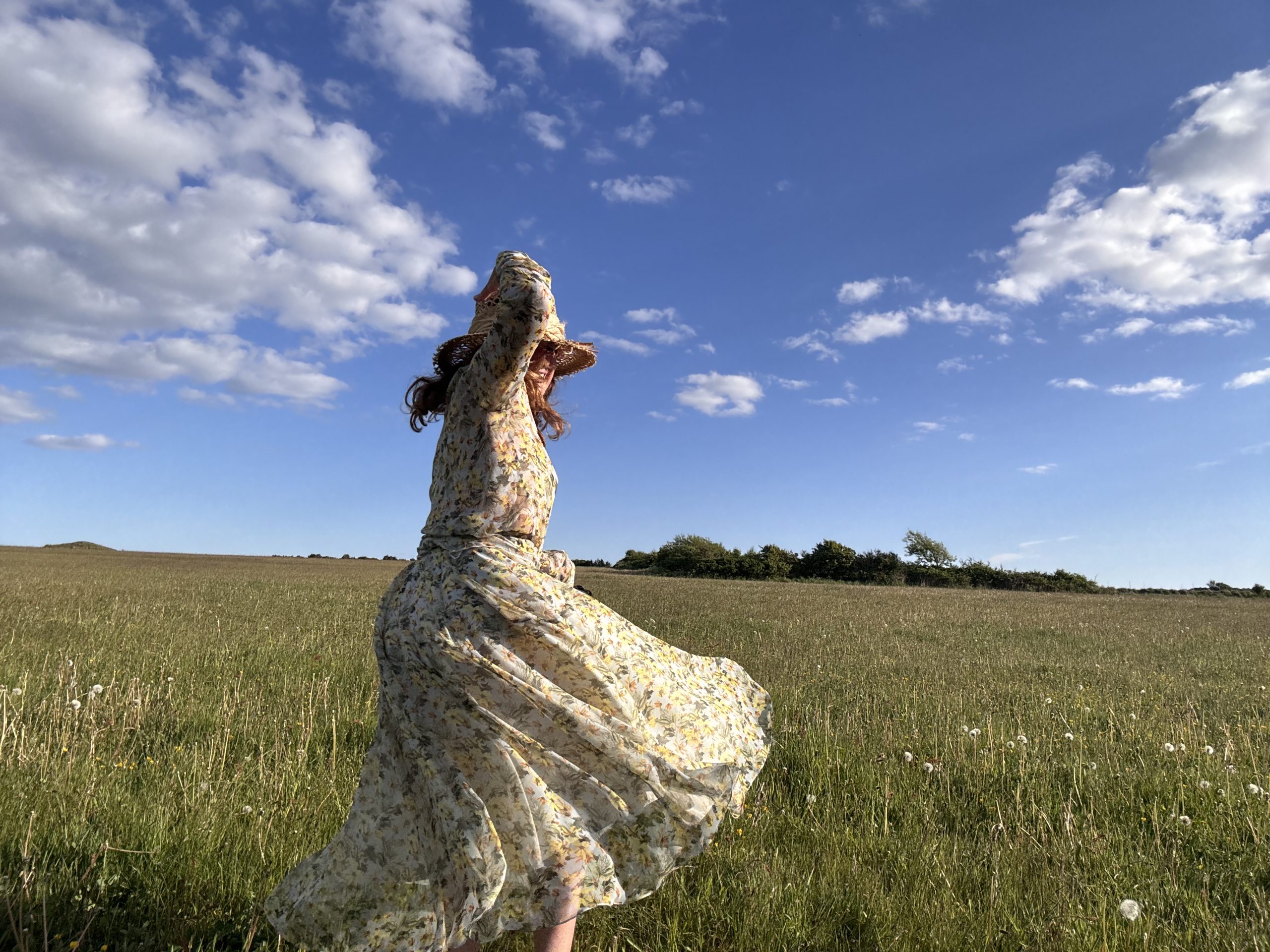 Weich streichelt die Seide um meine Beine, schon der leiseste Windhauch bewegt den Saum. Ich frage mich, ob diese Kombination zu romantisch sei für mein aktionsbestimmtes Wesen. Ich trage doch sonst immer kurze Röcke und Hosen, schreite weit aus und schwinge mich unter Zäunen hindurch. Aber vergessen wir nicht, wir sind vieles.