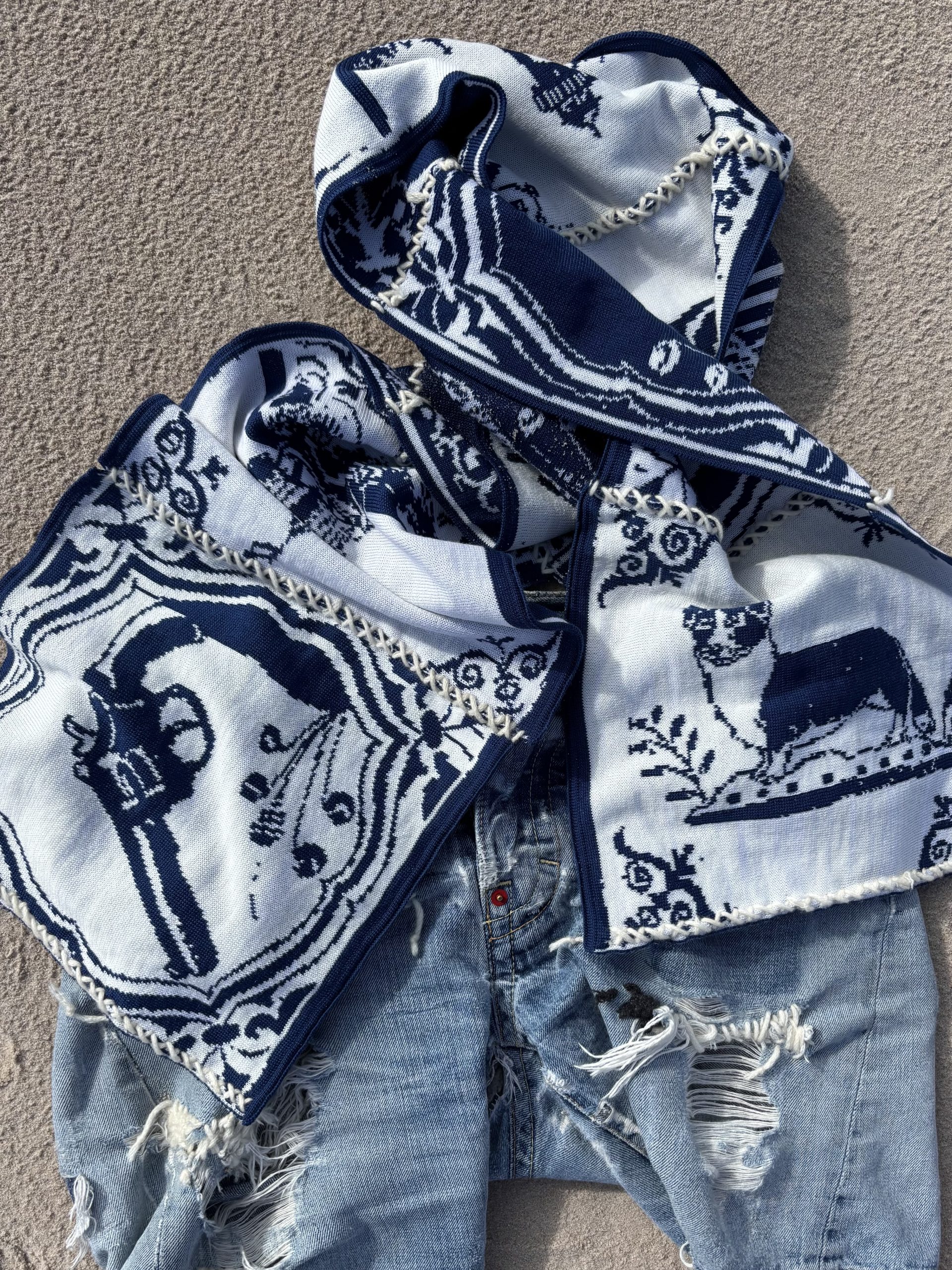 KRIMI SCHAL UNIKAT HANDMADE, BLAU