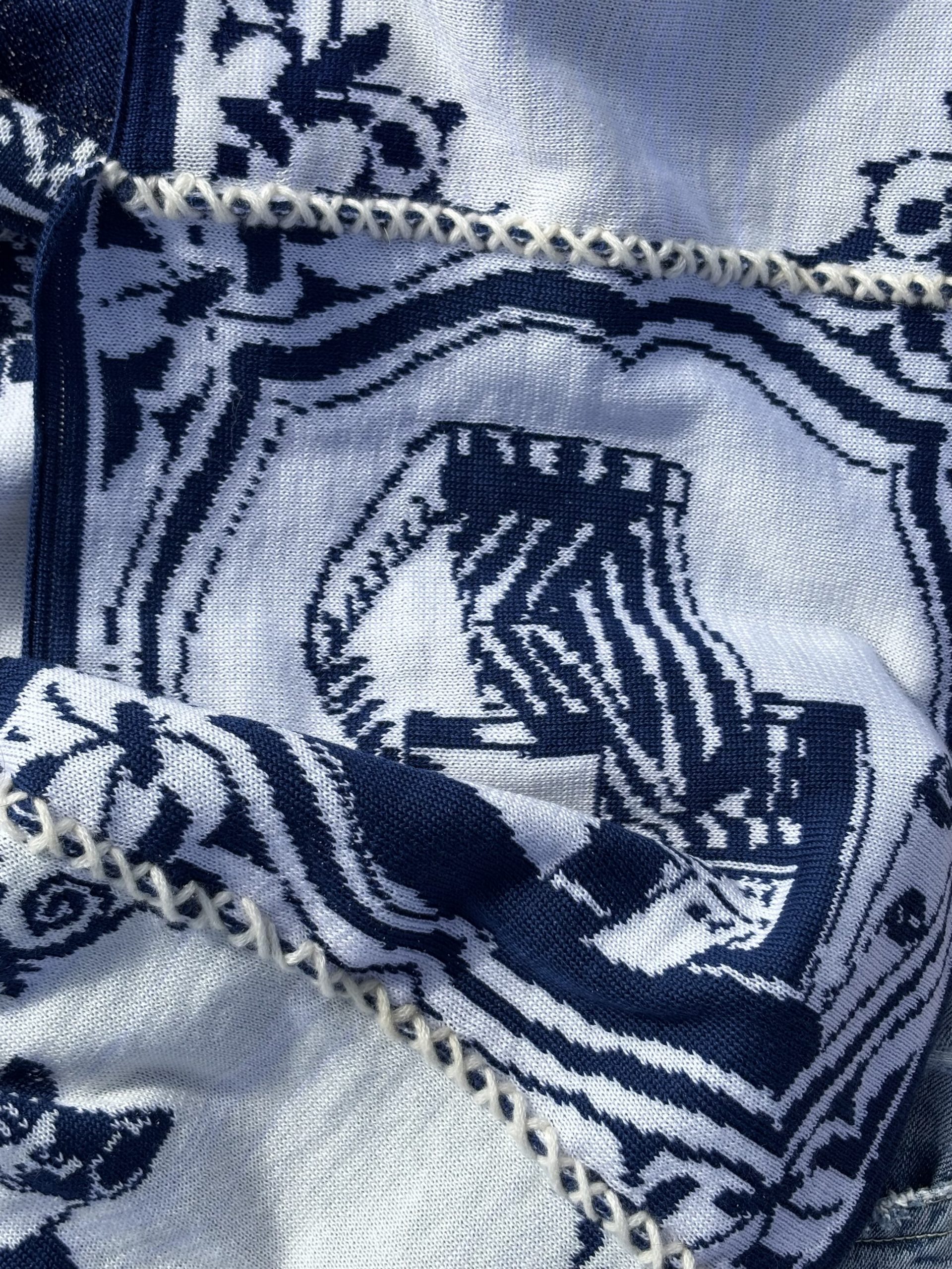 Wie Ihr wisst, liebe ich den Mustermix. Natürlich funktioniert der Kachel-Schal perfekt mit weißer Bluse oder weißem Pullover, aber (!) für mich geht er zu allem, und so trage ich ihn fröhlich in Kombination mit dem Childhood Men’s Shirt. Ich finde, er gehört zu diesem Sommer an der See!