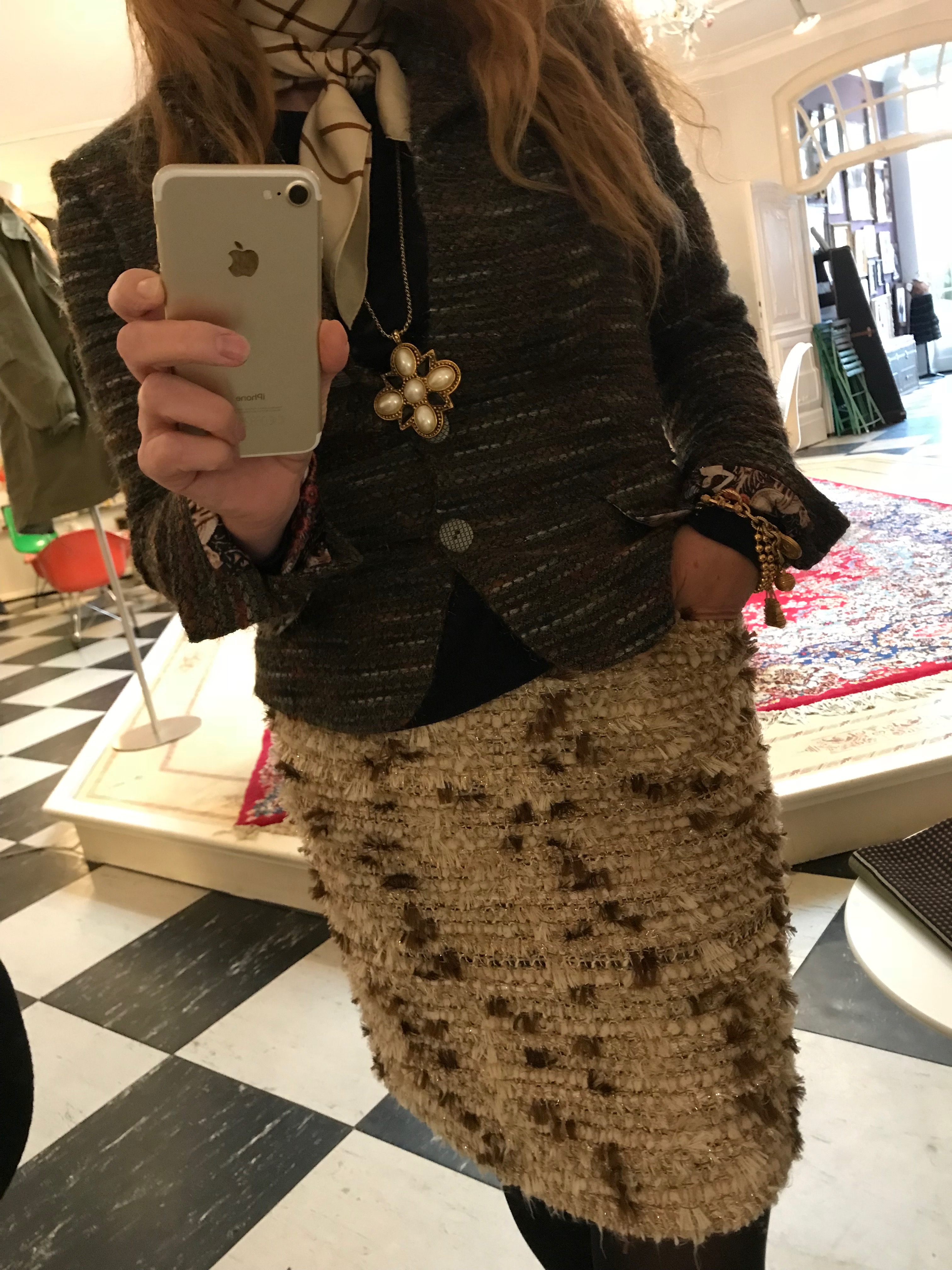 So, nun ist es doch wieder spät geworden. Der Kamin ist schon lange aus, das Glas Wein getrunken … Im Atelier ist dunkel. Ich trage den neuen Rock und den Blazer und hänge dabei den Gedanken an diese unangepasste kluge Frau nach.