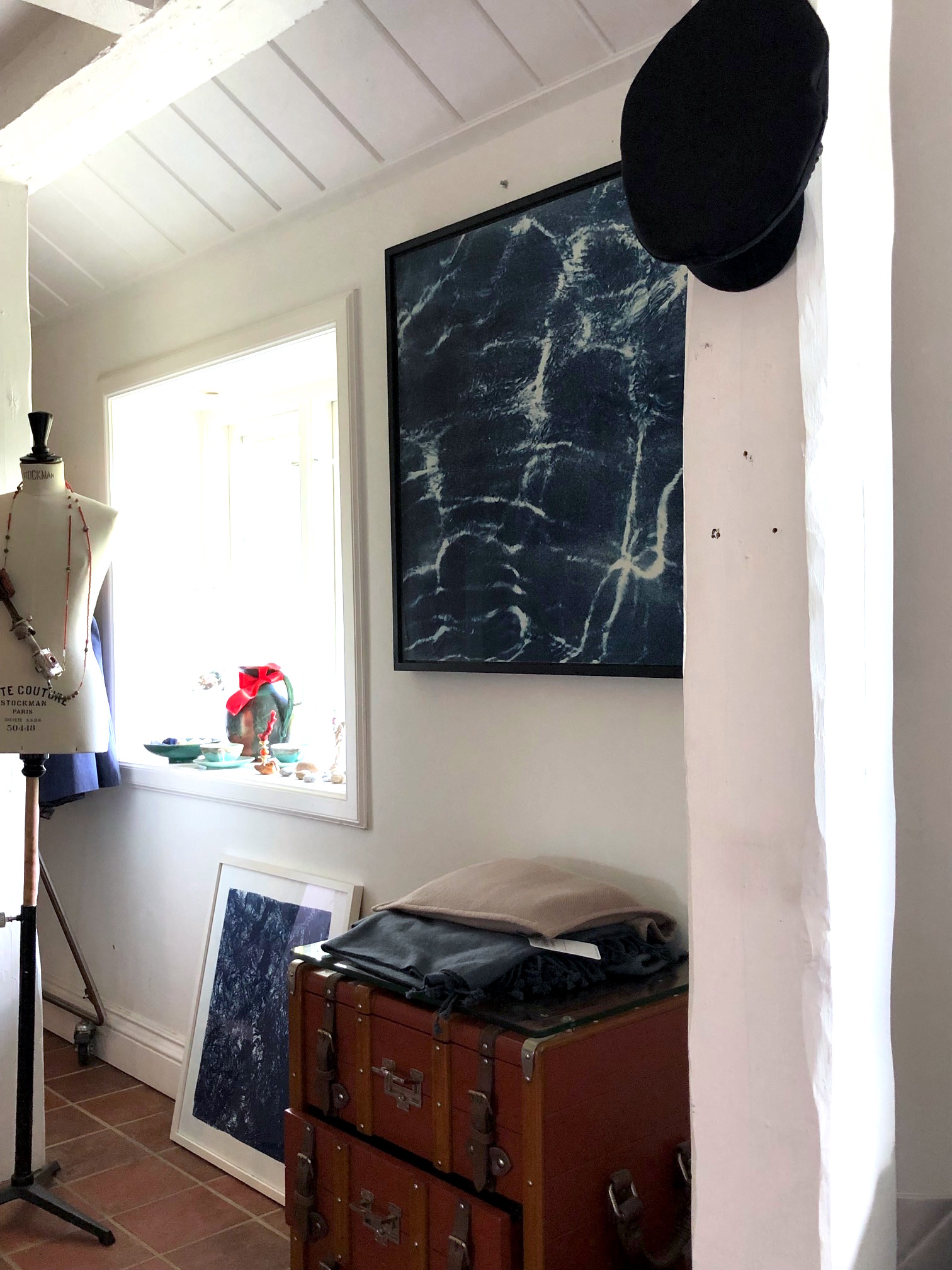 Der Sylter Sommer geht in den zweite Runde. Wie lange bin ich eigentlich schon hier auf der Insel? Ein Monat auf jeden Fall und es werden sich wohl noch ein paar Wochen mehr dazu addieren. Freunde kommen und gehen. Oben über dem Laden sieht es aus wie ein Bettenlager aus der Hippie Zeit, Toska ist noch da. In der kleinen Küche zaubert der Graf seine köstlichen abendlichen Mahlzeiten. Und hier unten im Geschäft bin ich wieder die alleinige Herrin über die Mode und … die Kunst. Letzteres ist ganz wichtig, denn sie macht den Laden zu einem besonderen Ort. Sie transformiert die Räume in eine geistvolle Privatheit. Ohne die Kunst, hätten wir kahle Wände mit Ware an der Stange.