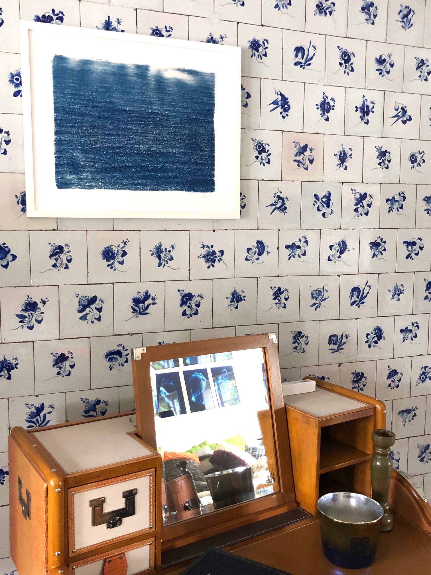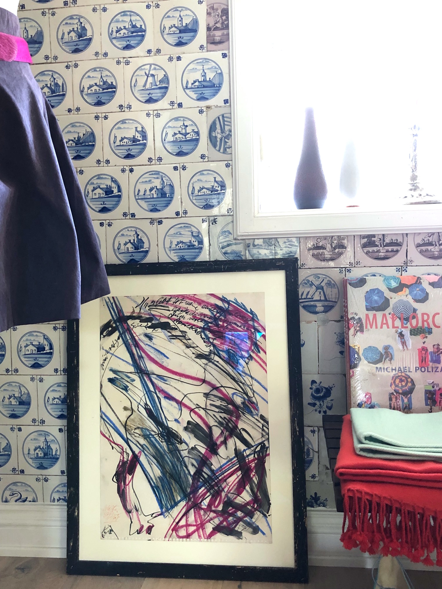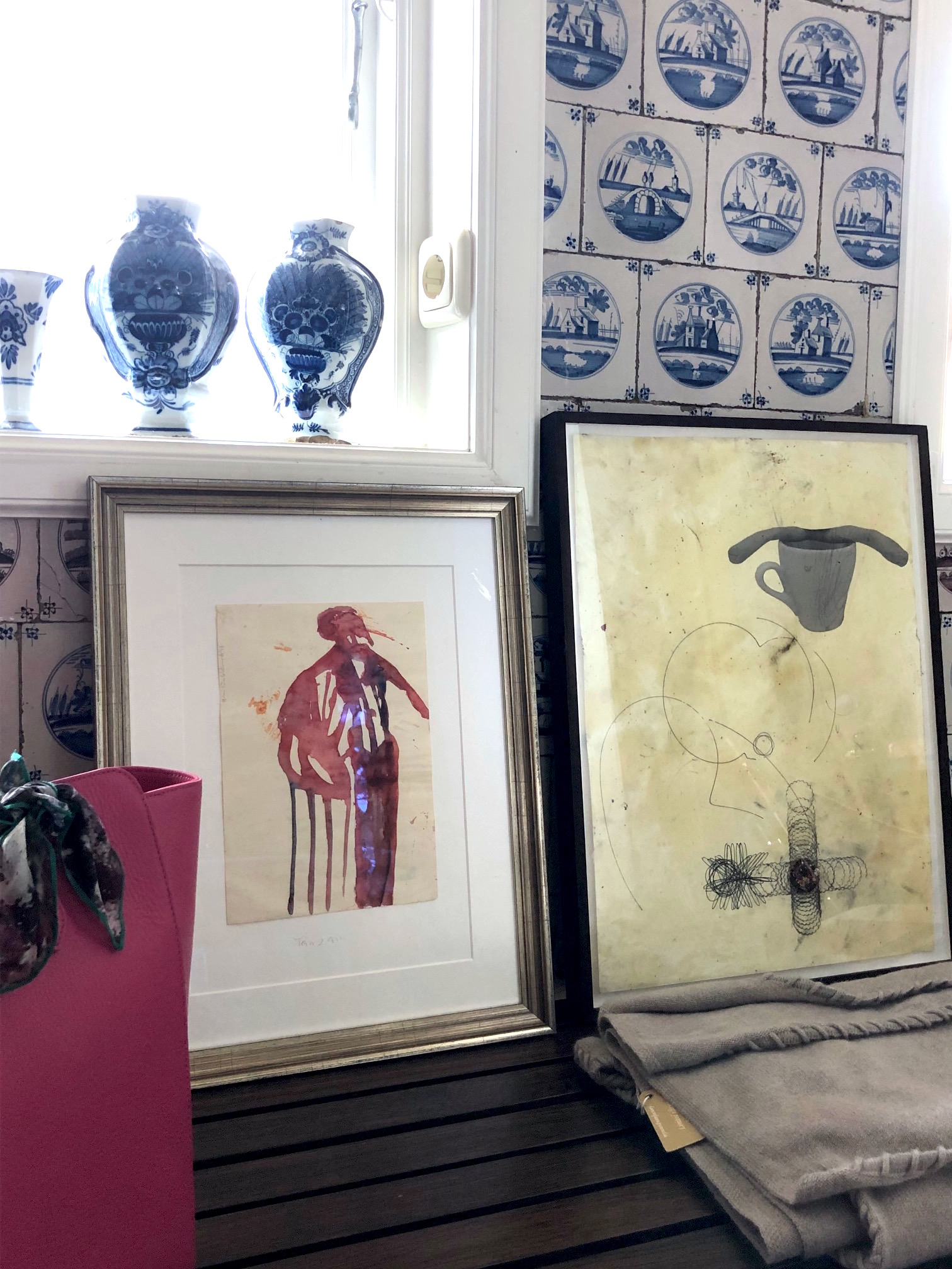 Das Delfter Zimmer ist frisch eingerichtet, nachdem die Secondella Freundinnen die Insel wieder verlassen haben. Es atmet die Luftigkeit von alten Fliesen, aktueller Mode und – natürlich – der Kunst dazwischen.