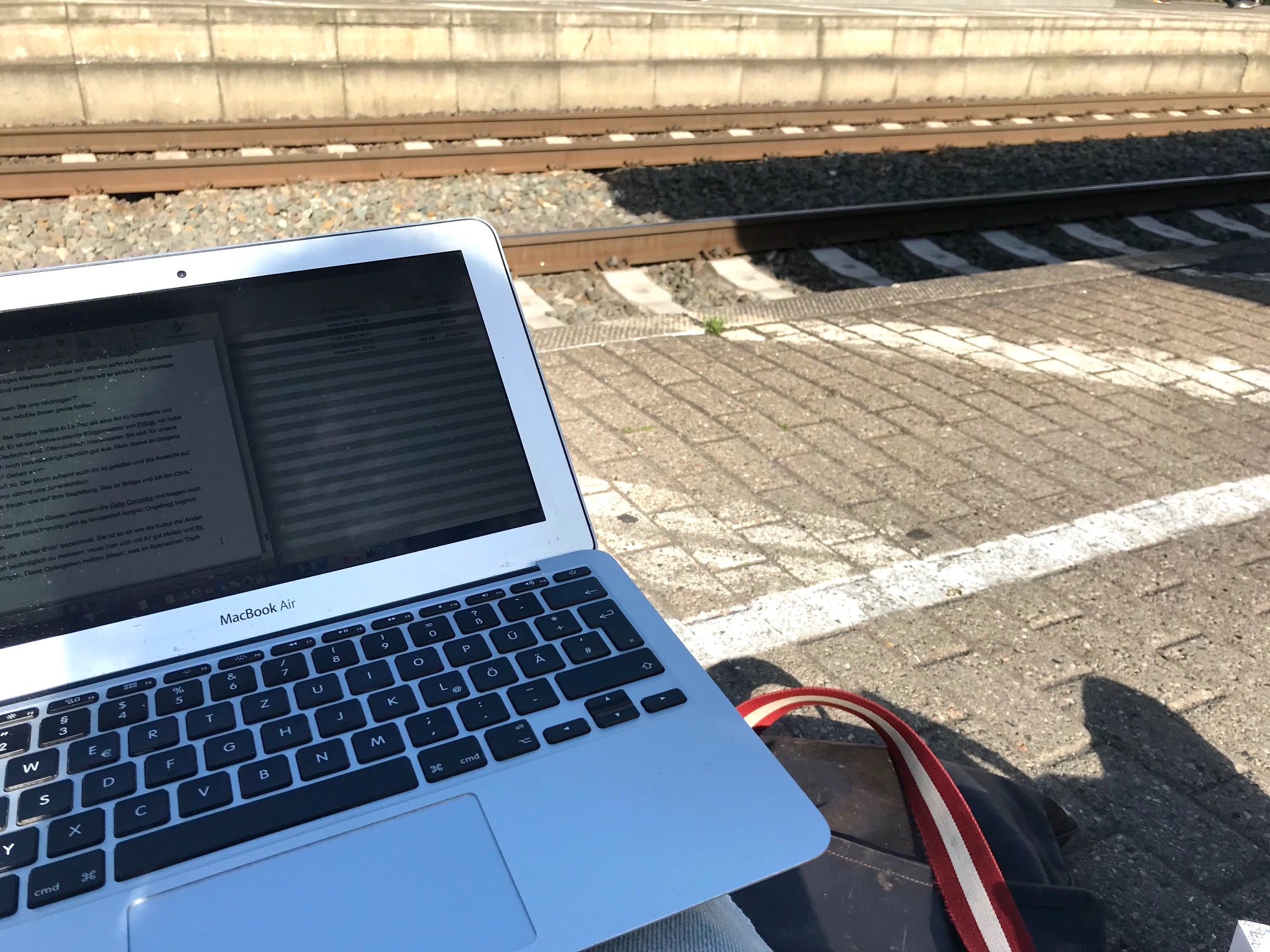Am Altonaer Bahnhof fiel der erste Zug aus, Weichenstellungsprobleme. Kein Problem ich schreibe. Dann weiter bis Elmshorn, der zweite Zug fiel aus. Kein Problem, ich schreibe weiter.