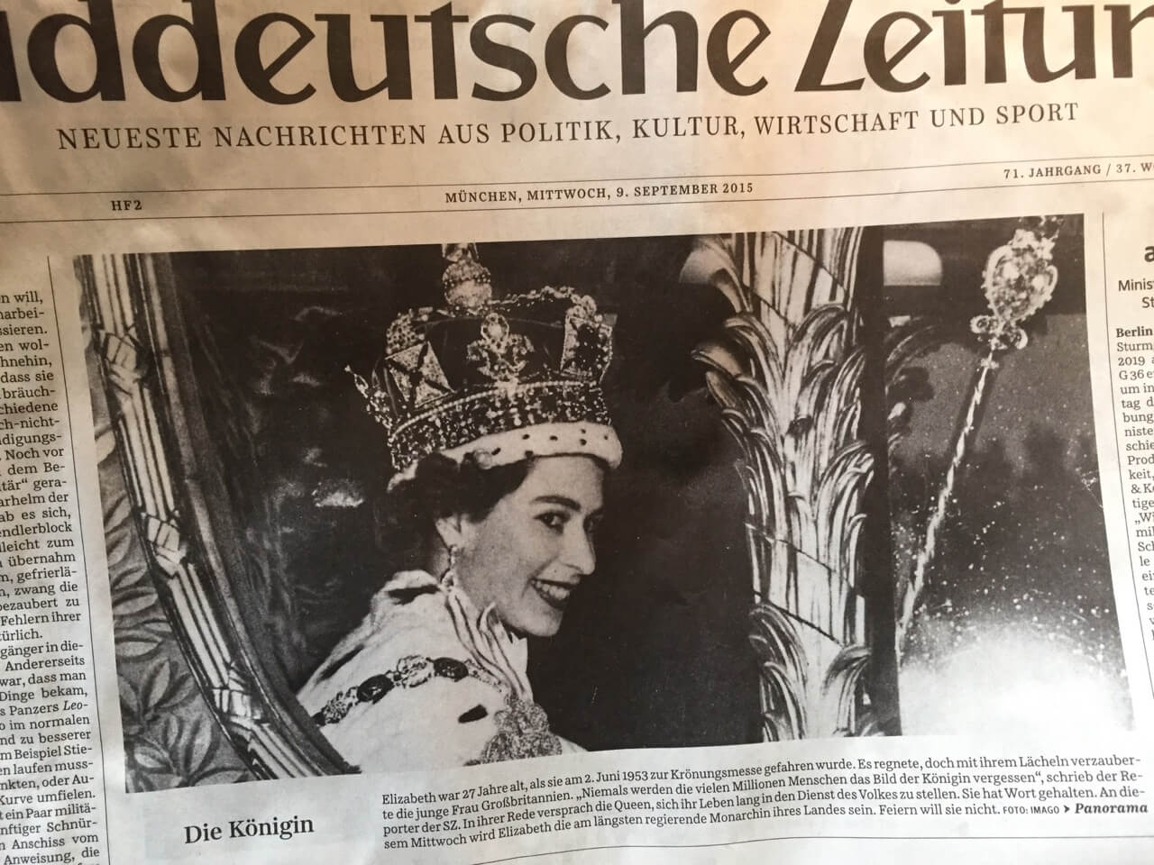 Yesterday, on September 9th the Queen of Great Britain became the longest ruling monarch of her country. When she went to her coronation aged 27 on June 2nd, 1953, she was wearing the crown with the famous Kooh-I-Noor Diamond. You can also see it on the „Diamond Blouse“ of Roma e Toska.